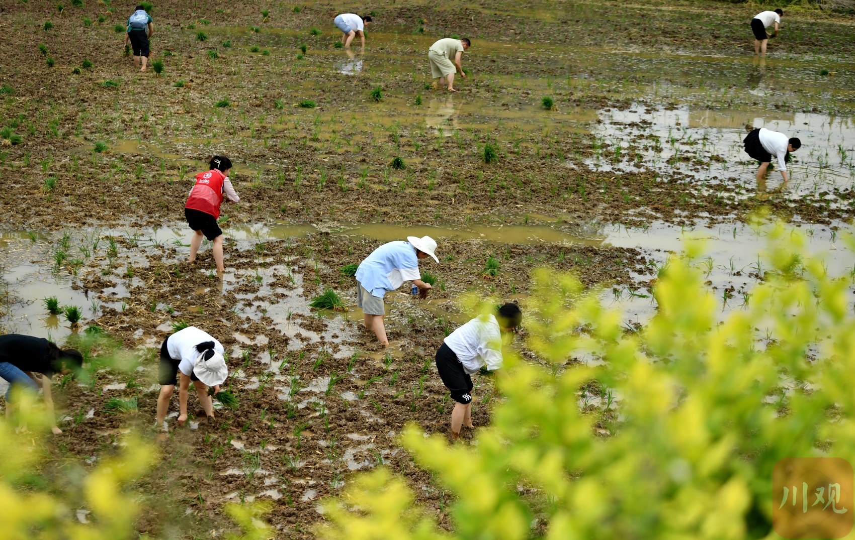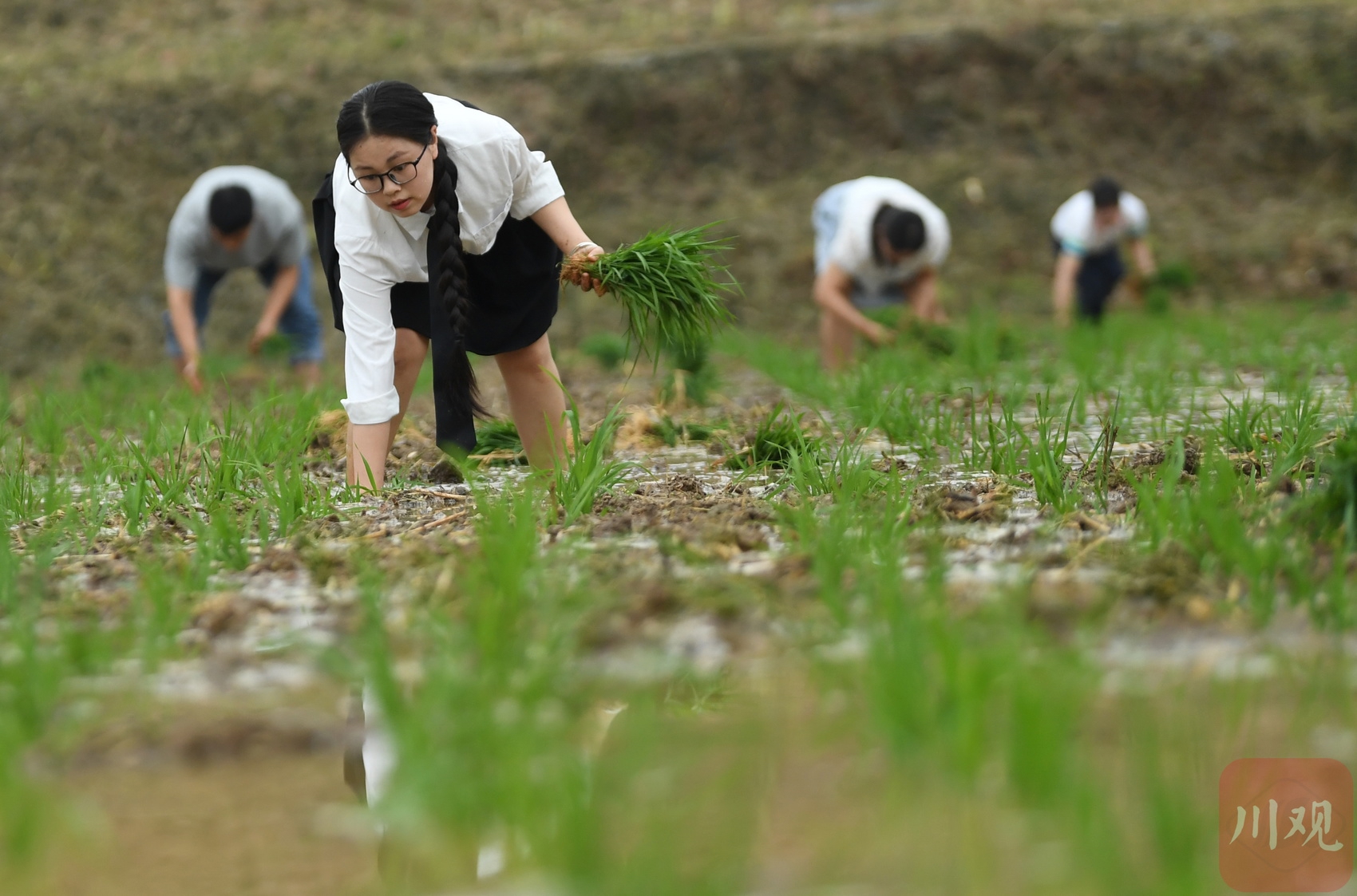 2025年5月17日,“成都开放大学双流学院大学生社会实践活动”在四川省成都市双流区永安镇梨园村开展,50名大学生组成助农小队,深入田间地头,帮助缺劳户开展水稻插秧。