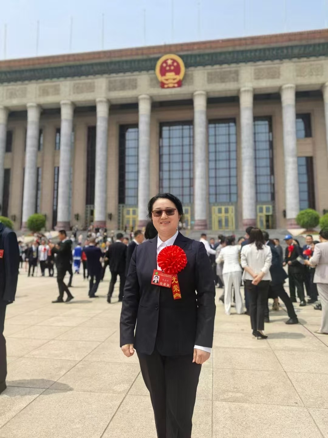 表彰大会后,陈亚辉在人民大会堂前摄影留念。