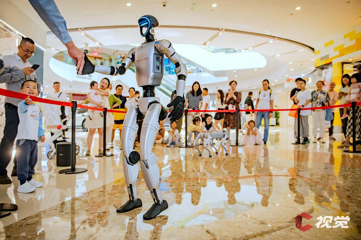 5月2日,新款的机器人和机器狗“空降”成都市一大型购物中心,与市民互动。