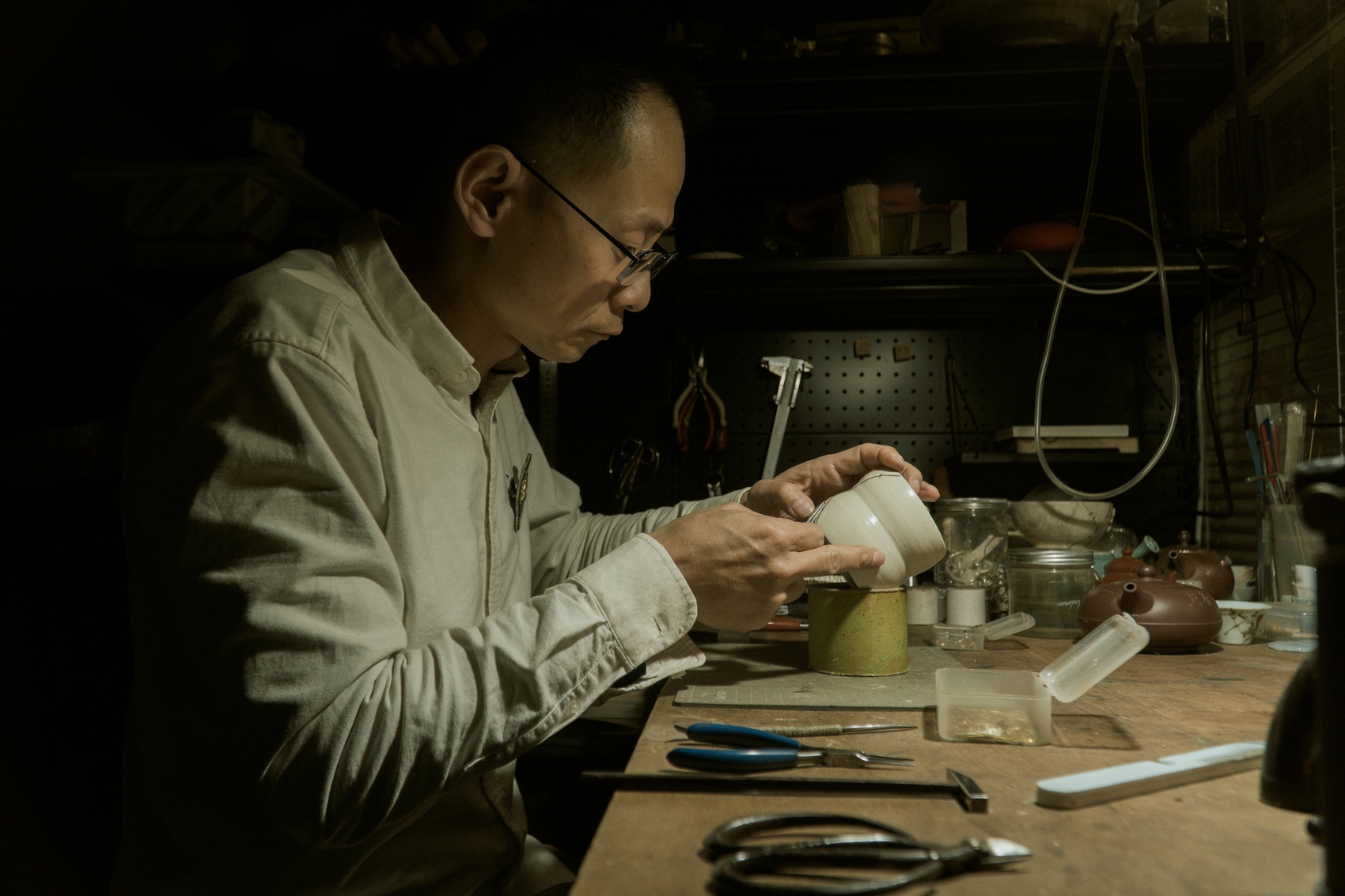 旅行结束后,相隔两地的黄柏彦和赖小霞每天只能通过电话诉说思念,“那时候,一个月的电话费差不多要花2000多元。”相识不到一年,赖小霞勇敢地从四川远嫁到台湾生活,并逐渐开始接触茶艺。2008年,带着对茶艺的热爱和对家乡四川的牵挂,赖小霞从台湾回到四川创业。2012年,黄柏彦也来到四川扎根发展,两人共同经营起一家名为“拙茶”的茶空间。妻子主要负责着店里的日常经营,黄柏彦则致力于非物质文化遗产锔瓷的传承和发展。