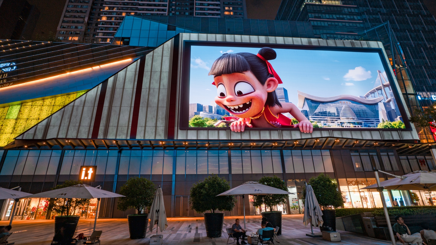 5月18日,裸眼3D“哪吒”在成都多个大屏上线。(王翱 摄)