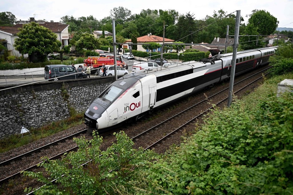 法国西南部托南的高速铁路部分路段近日遭暴雨侵袭,导致轨道受损,一列连接图卢兹和波尔多的高速列车被迫暂停行驶。