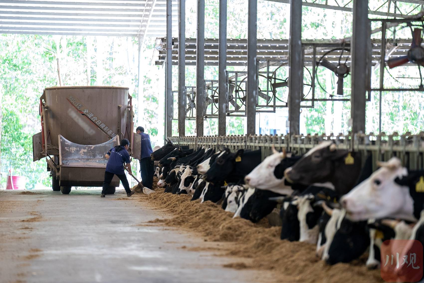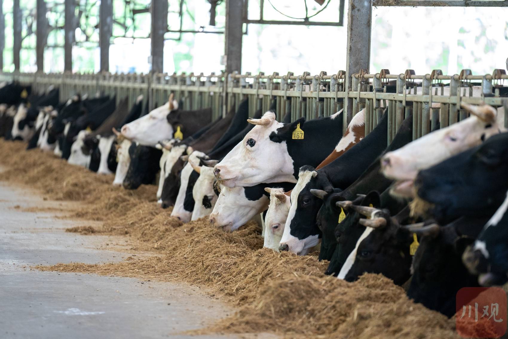 5月19日,我来到四川乐山市一家小型奶牛养殖基地——夹江县黄土镇蟠龙村汇龙畜禽养殖专业合作社。室外天气炎热,养殖棚却很凉快,一排排风扇正在“卖力”地摇摆,自动喷淋装置为奶牛送上清凉。