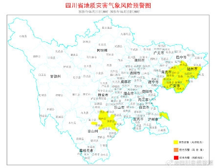 根据四川省气象台天气预报情况,结合四川省地质环境条件,5月21日20时至5月22日20时,全省地质灾害气象风险预警结果如下: