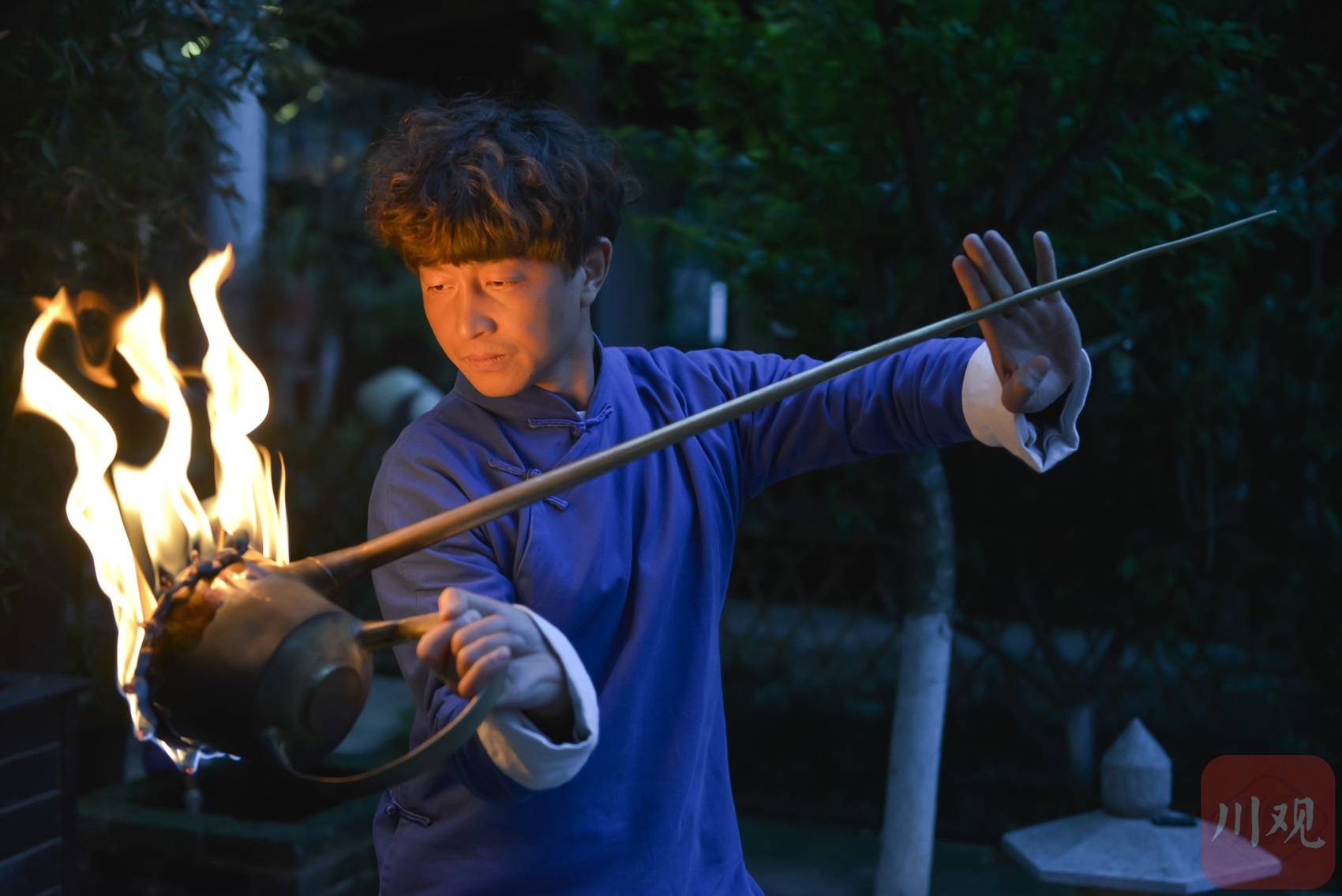 曾小龙作为茶艺界的大咖,荣誉等身,不仅是四川省茶艺大赛冠军,还担任成都大运会市民推广大使,甚至曾为多国领导人表演茶艺。他不断创新,打破长嘴壶茶艺只能表演冷水的局限,打造“火壶”茶艺,这次更是让长壶技艺与打铁花、水完美结合。炽热的铁花如星河般倾泻,灵动的长嘴壶在水中抛舞,刚与柔、火与水,两种百年技艺碰撞出奇妙火花。