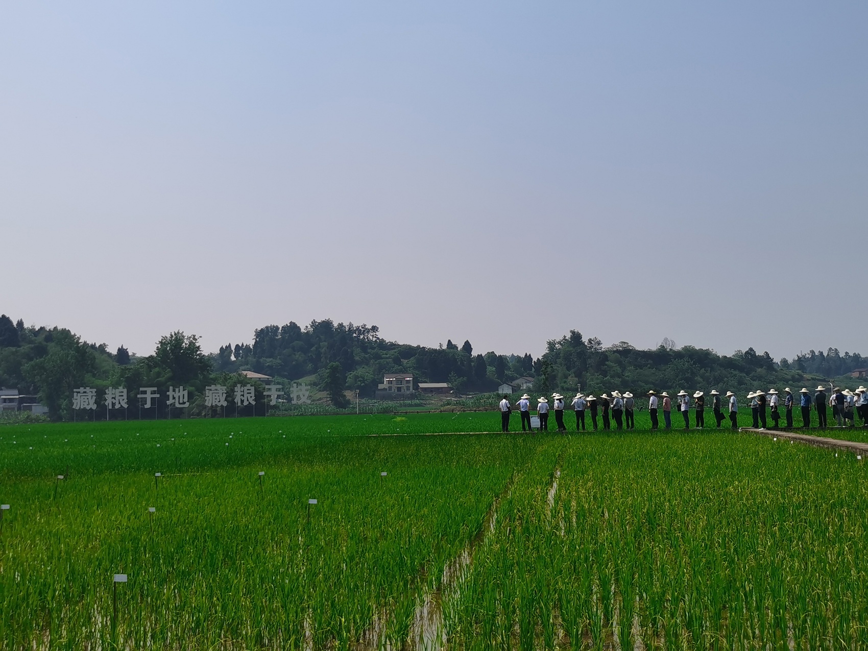 参会人员深入自贡市再生稻试验基地,了解田间农业气象观测如何影响再生稻生产。