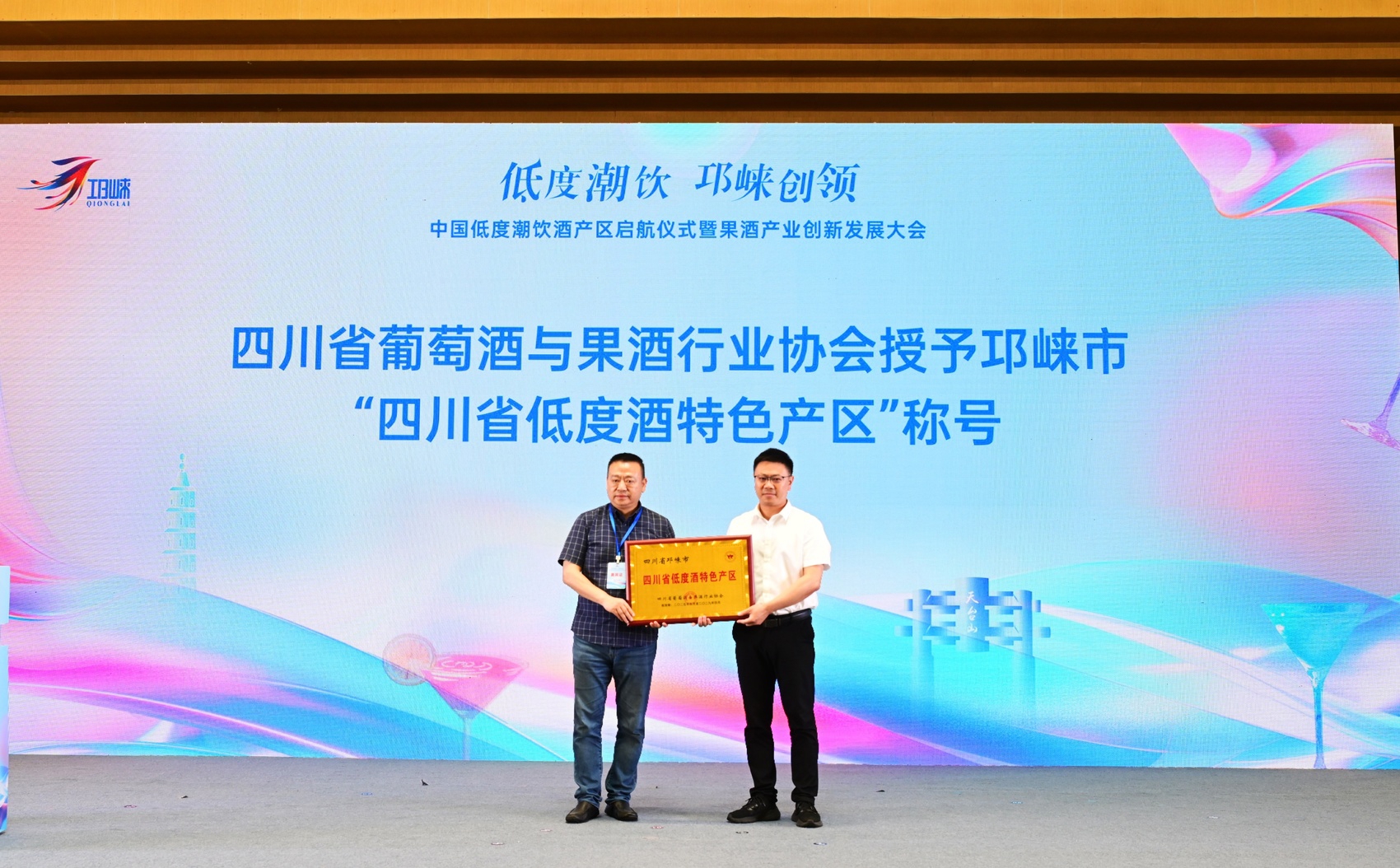 5月22日,中国低度潮饮酒产区启航仪式暨果酒产业创新发展大会在成都市邛崃市举行。现场,四川省葡萄酒与果酒行业协会授予邛崃“四川省低度酒特色产区”称号,并宣布邛崃为年度中国低度潮饮系列活动的永久举办地。