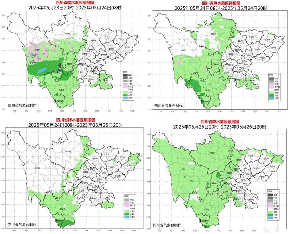 四川省气象台预计,川西高原大部和攀西地区西部北部23日夜间到24日有阵雨(雪)或雷雨,中部南部有中雨(雪),局部大雨(雪),需防范气象次生灾害及雨(雪)天气对交通运输带来的不利影响。