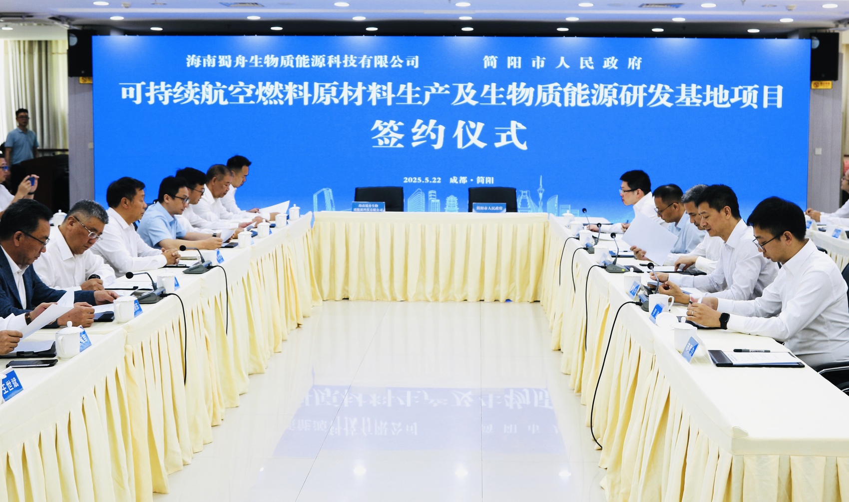 5月22日,简阳市人民政府与海南蜀舟生物质能源科技有限公司签约可持续航空燃料原材料生产及生物质能源研发基地项目。