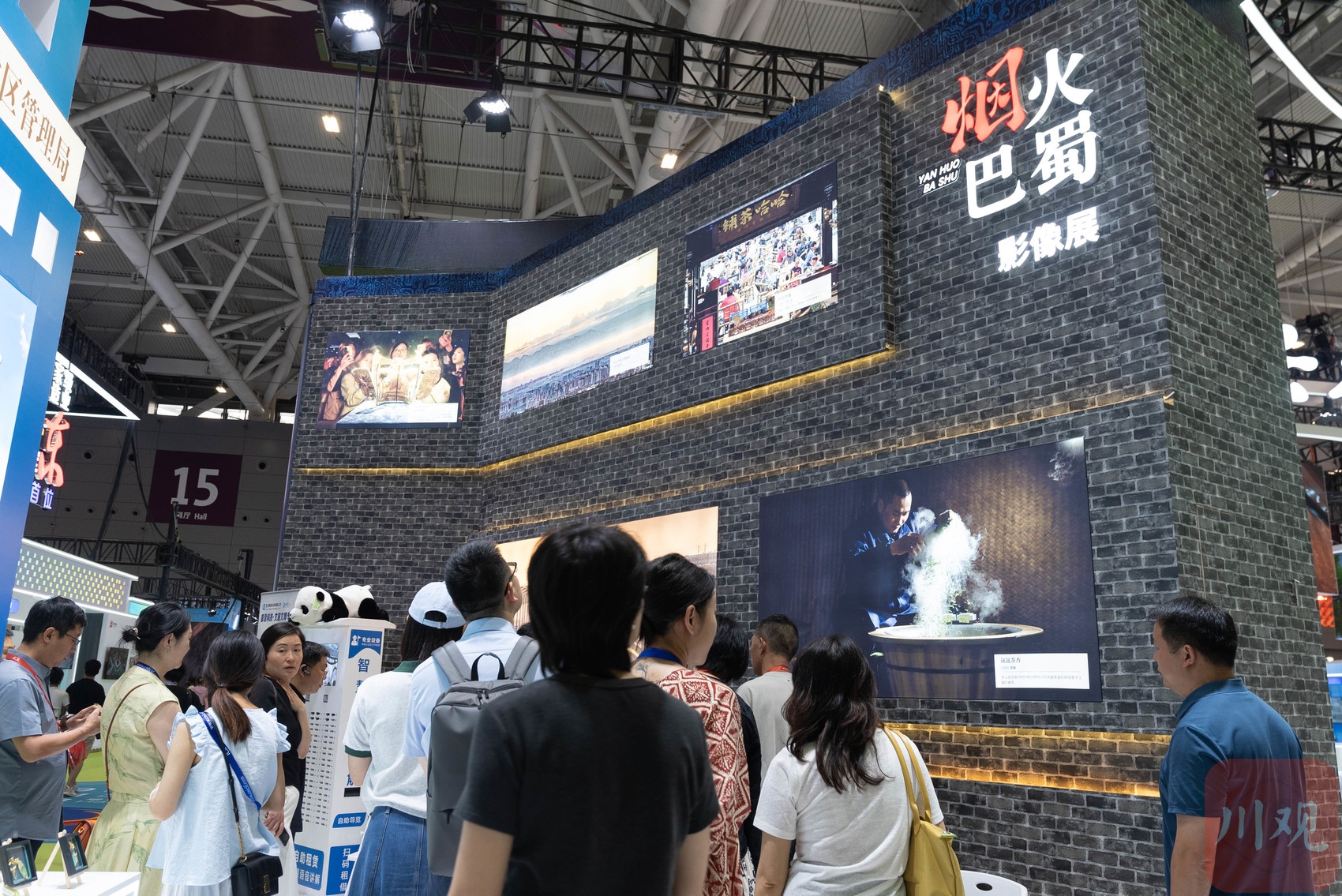 5月24日,第二十一届中国(深圳)国际文化产业博览交易会火热进行。不少观众来到四川馆 “打卡”,最先被环绕展馆的C视觉 “烟火巴蜀” 影像展吸引,驻足欣赏。