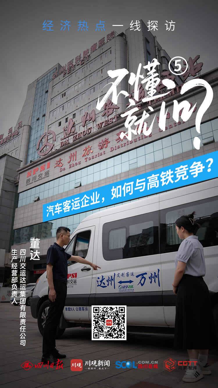 大车变小车后,座位变宽了、速度变快了,坐客运大巴不舒服的“痛点”解决了。但是,我脑海里立即闪出另一个问题:商务车更舒适了,难道就会有人来坐了吗?坐高铁也很舒适啊!董达还没来得及回答我的问题,他指着眼前一趟即将出发开往巴中市通江县的定制客运车说,答案就在这趟车上。
