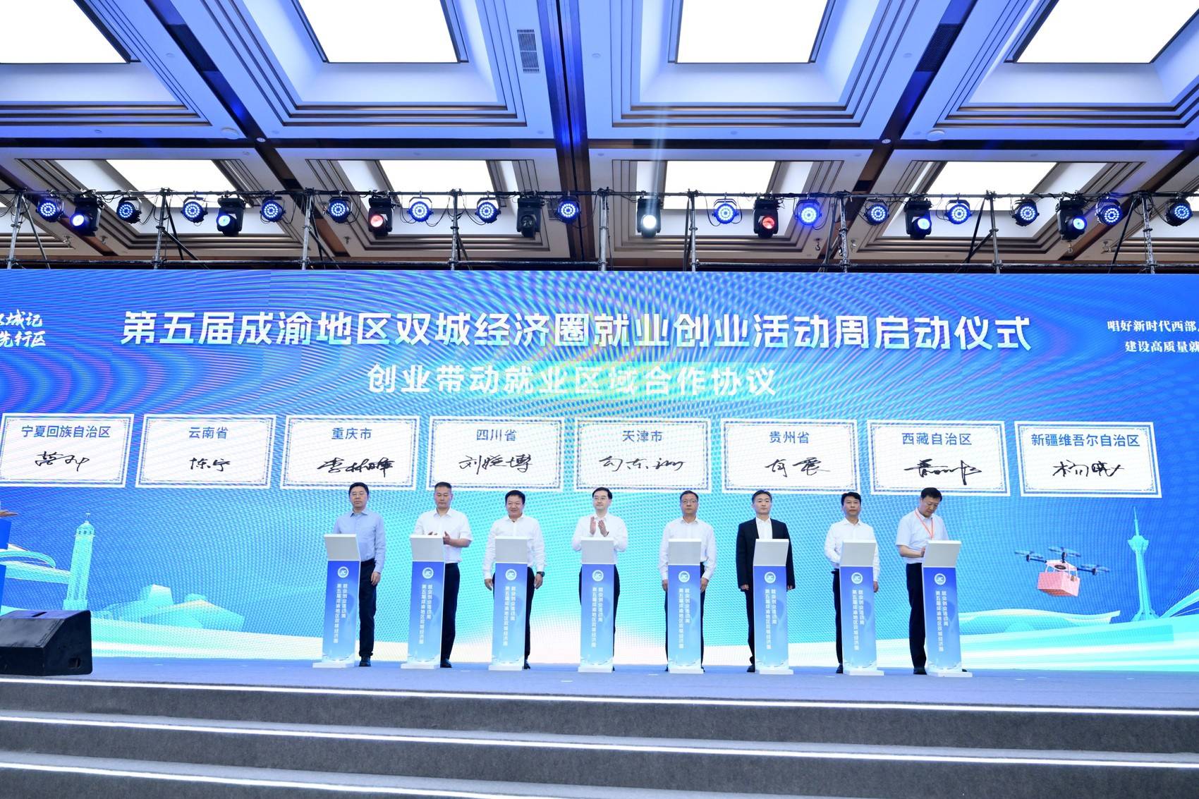 当天的启动仪式上,5家金融机构60余个第五届“天府杯”创业大赛获奖项目意向性授信4.9亿元。四川等8省(区、市)共同签订了《创业带动就业区域合作协议》,强化省际间人社协同发展,促进区域高质量充分就业。活动还颁发了第五届“天府杯”创业大赛一二三等奖、“创客之星奖”“十佳创业故事奖”、优秀组织奖、特别贡献奖等相关奖项。