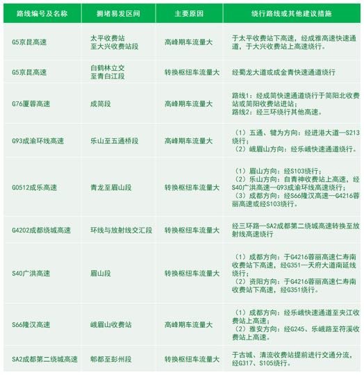 普通国省干线方面,预计端午假期全省普通国省干线日均断面流量约9033辆,同比增长14.0%,主要集中在眉山、成都、自贡、绵阳、乐山、德阳、广元、泸州、遂宁、宜宾。