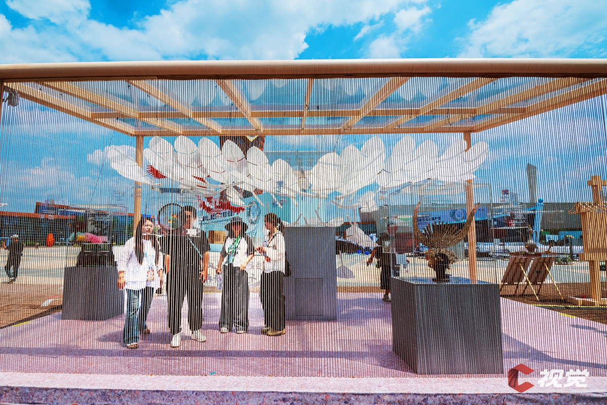 5月28日,成都国际非遗博览园,市民参观室外展区。