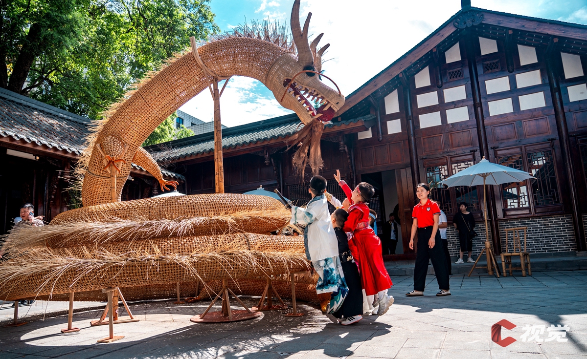 5月28日,崇州非遗生活馆内,一条28.8米长的怀远非遗藤编长龙成为焦点。