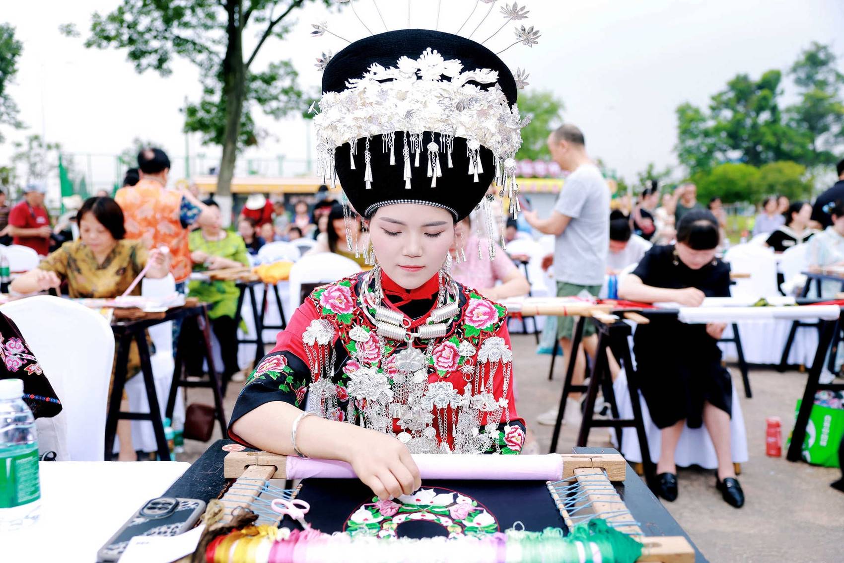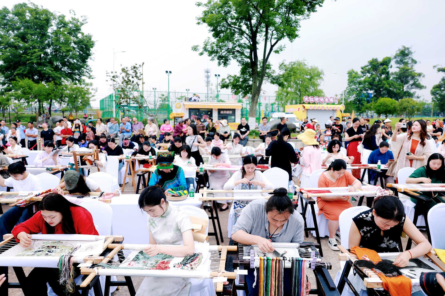 5月29日,成都市郫都区安靖蜀绣融合创新产业园内,第九届中国成都国际非物质文化遗产节“安靖国际刺绣艺术周”启幕。作为“艺术周”的重头戏,第三届“金针杯”中国刺绣技艺交流活动吸引来自全国各地的95名刺绣代表性传承人参加刺绣大赛。