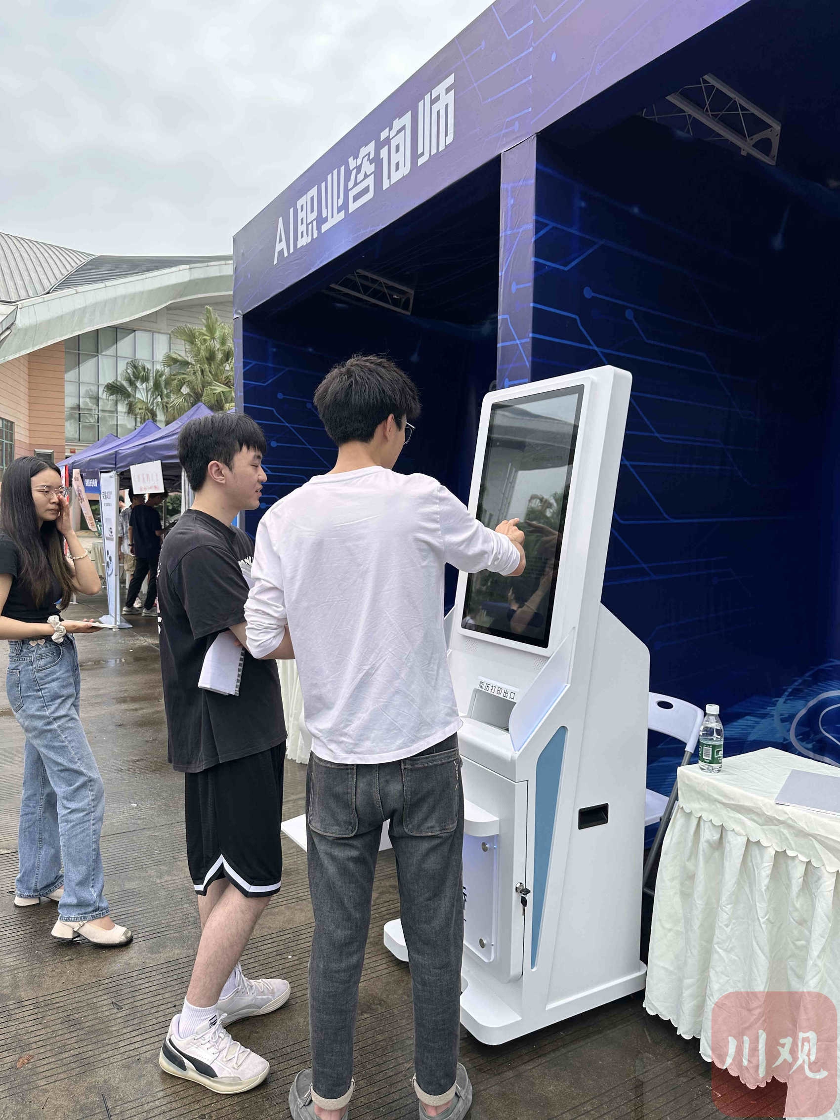 活动设有AI职业咨询、AI简历、AI面试、大学生征兵咨询等功能区,不仅为同学们求职过程中的痛点难点进行答疑解惑,还为同学们提供简历修改、入伍政策分析、面试技巧、生涯规划等“一对一”个性化咨询和指导。记者在现场看到,AI简历区域获得了最多关注,现场排队体验的同学络绎不绝。