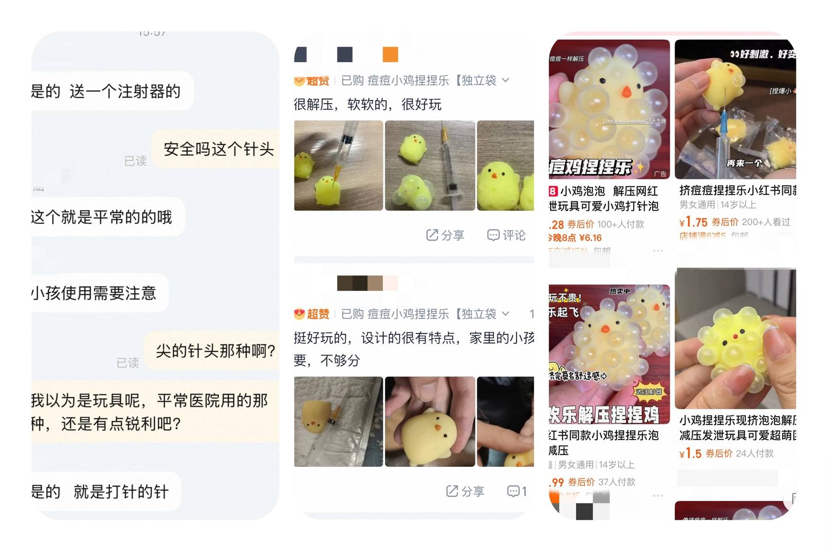 “小鸡打针泡泡玩具”电商销售火爆,针头安全存疑。网页截图
