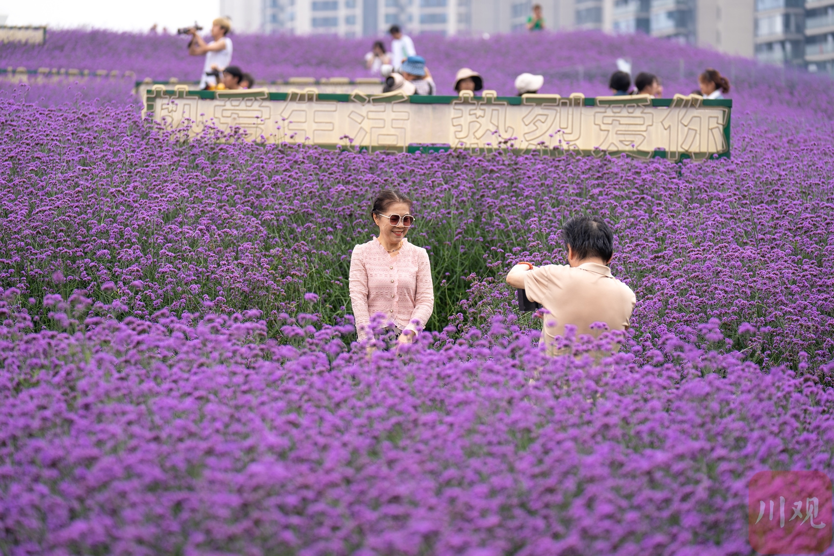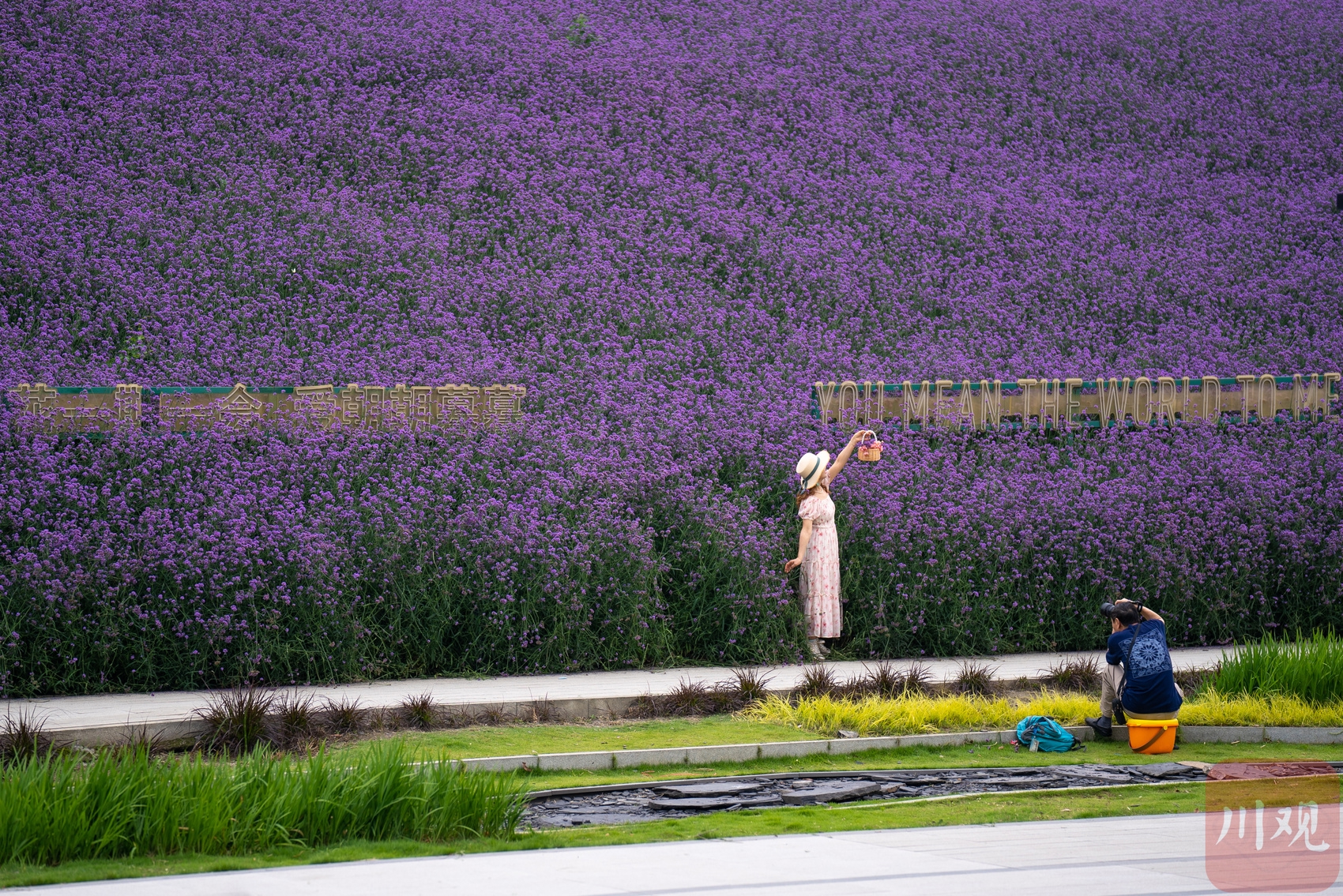 5月29日下午,一场小雨为成都市温江区星河World·科创城公园带来了别样清新,园内马鞭草迎来盛花期。成片的紫色花朵肆意绽放,微风轻拂,似紫色海浪翻涌,如梦似幻。