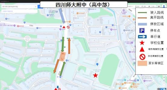 停车指南:送考大巴车在学校后门的合欢树街路边停放,社会车辆在学校后门的合欢树街两侧停放。