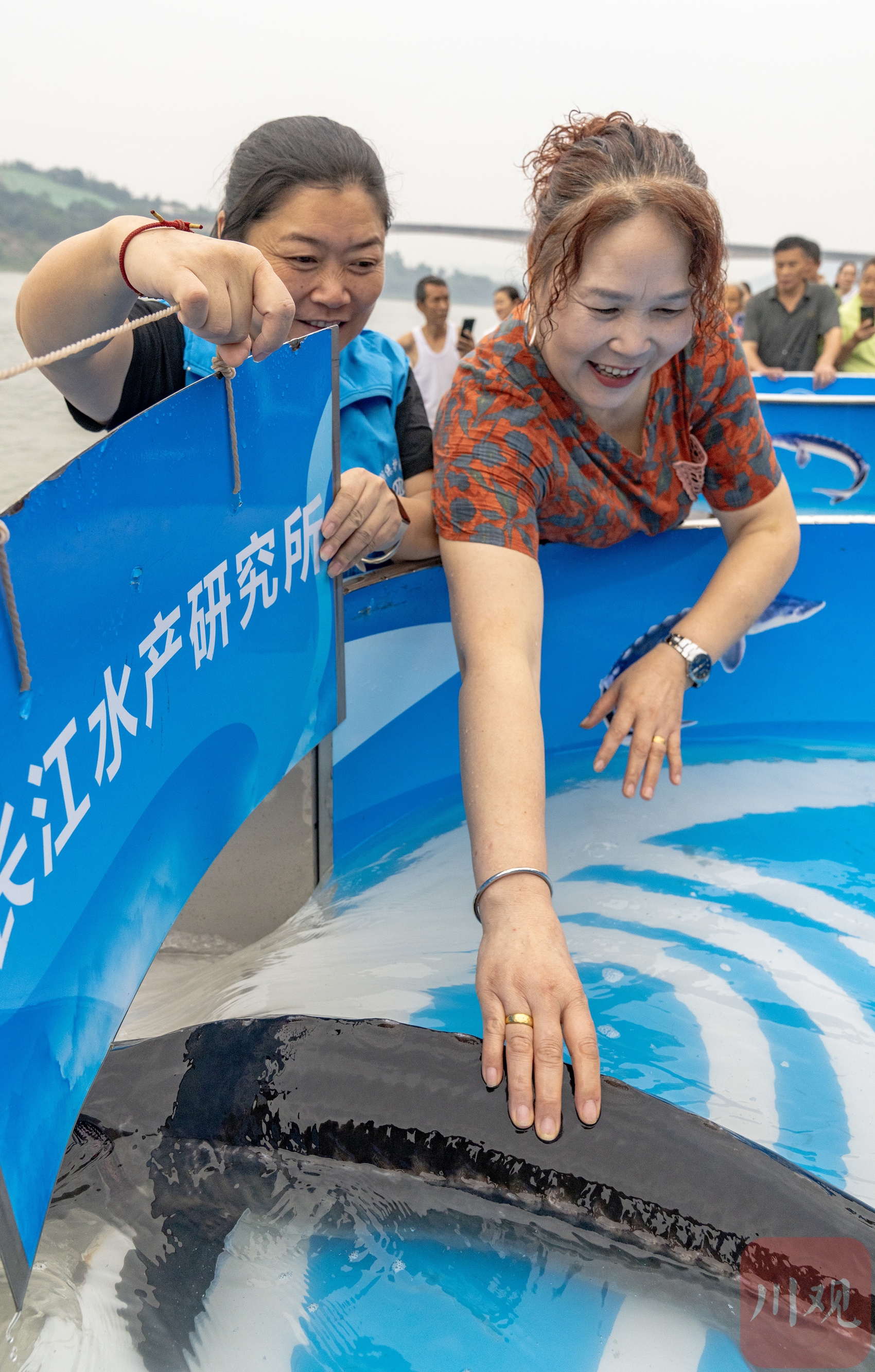 6月6日,江安县长江战备码头,市民参与增殖放流活动。