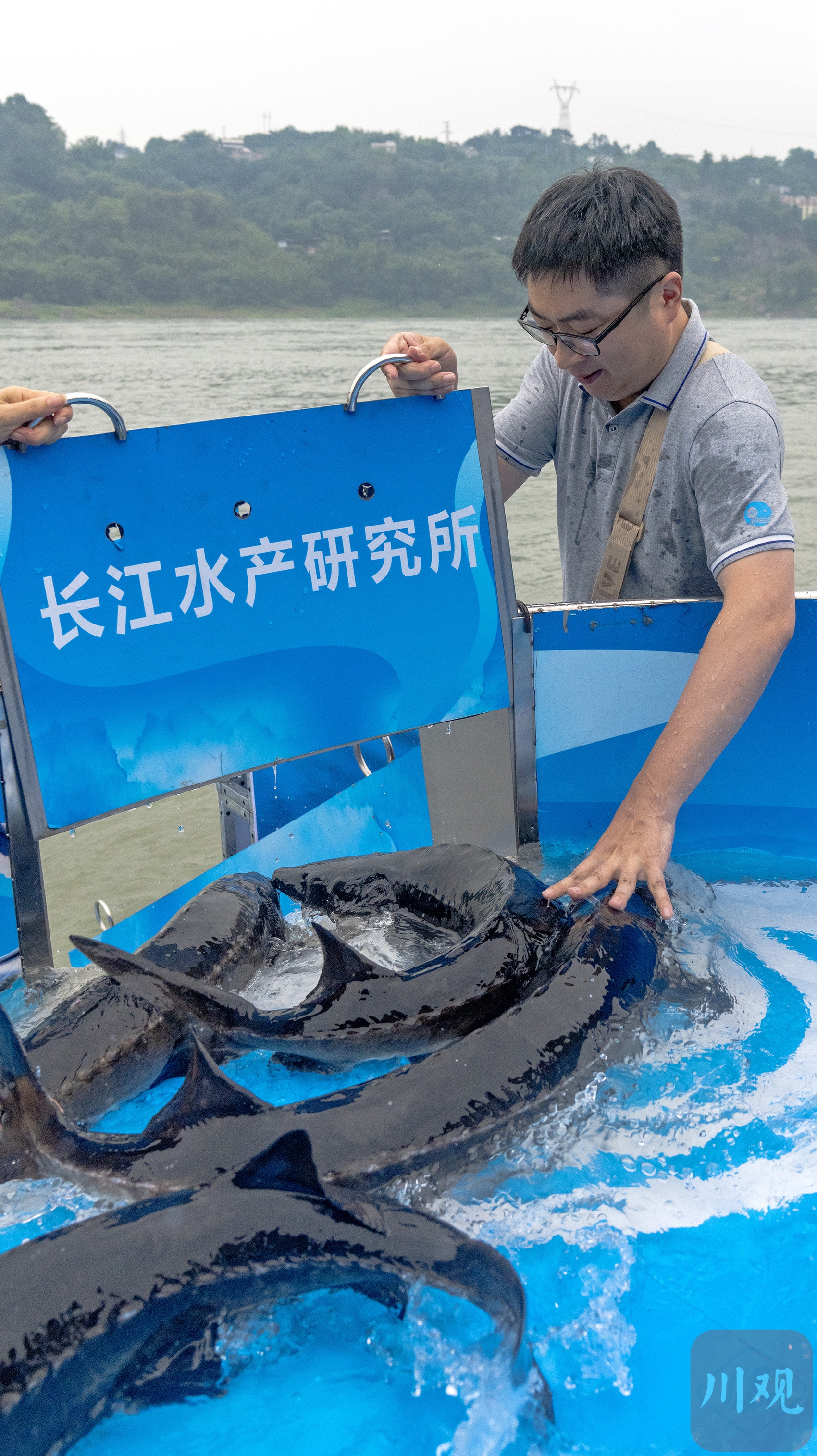 6月6日,江安县长江战备码头,100尾长江鲟(亲本)、25110尾长江鲟鱼苗被放入长江。