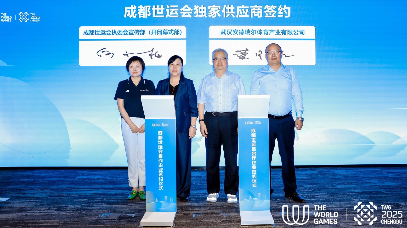 在当天的世运会合作企业签约仪式上,成都世运会执委会宣传部(开闭幕式部)与武汉安德瑞尔体育产业有限公司签署赞助合作协议,安德瑞尔将以官方独家供应商身份,为成都世运会提供更智能化的设施搭建保障服务。