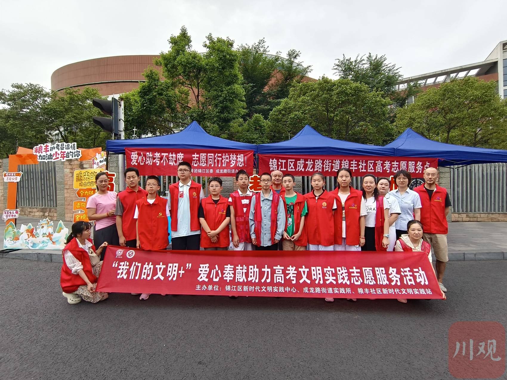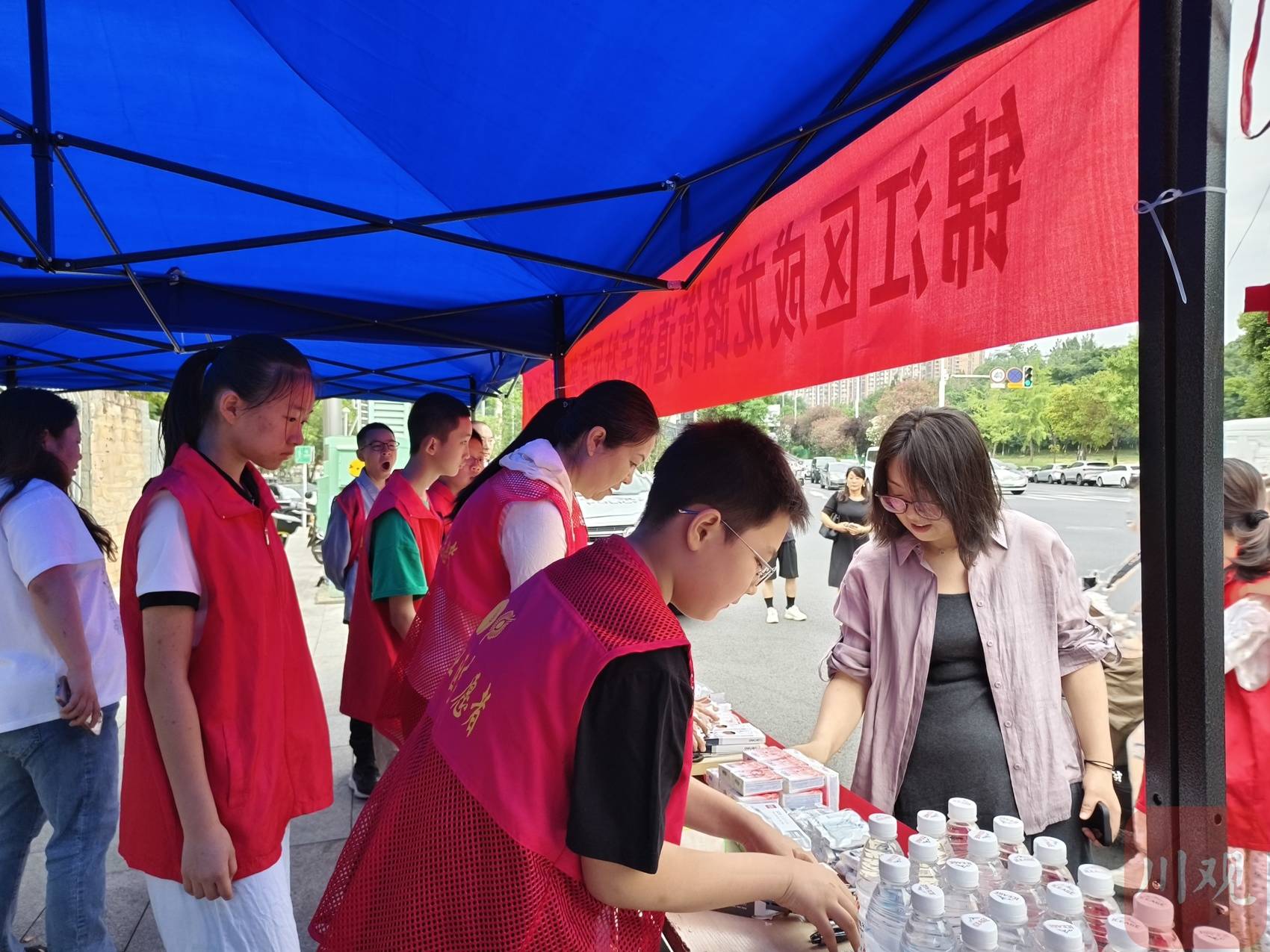 在志愿服务点位,矿泉水、小扇子、藿香正气水、纸巾、一次性雨衣等防暑降温应急物品一应俱全。树德外国语学校考点街对面的“山下·文明里”以及步行5分钟以内的R29社区生活空间、枫树社区党群服务中心还设置了“陪考茶歇”,可免费喝茶看书,并配备志愿者提供即时、轻松的情绪支持,缓解等待焦虑。