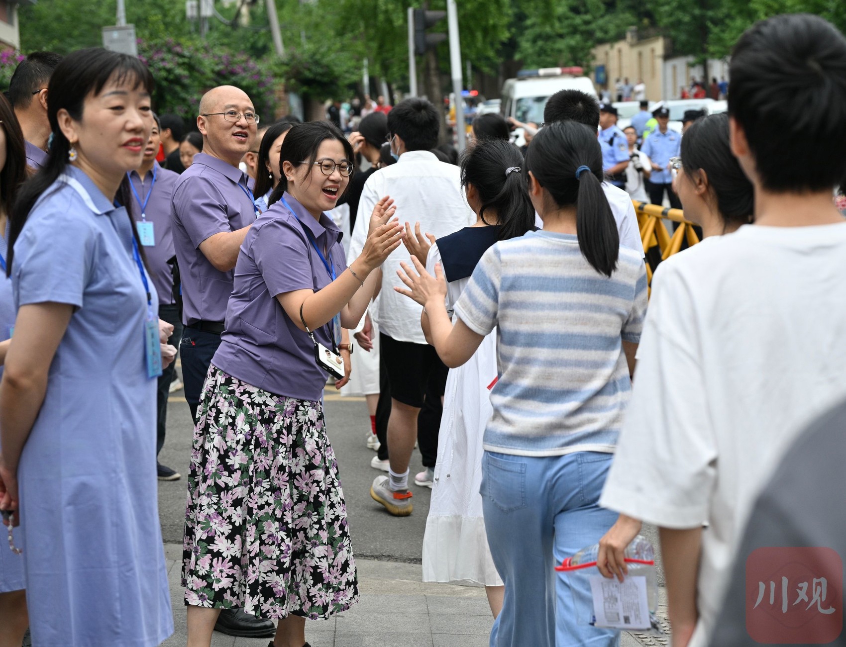 四川日报全媒体记者兵分多路,探访省内多个考点,直击高考首日:考点内,安检、核验、入场有序进行;考点外,志愿者、交警维护考点秩序,电力保障车、救护车、消防车等待命守护。