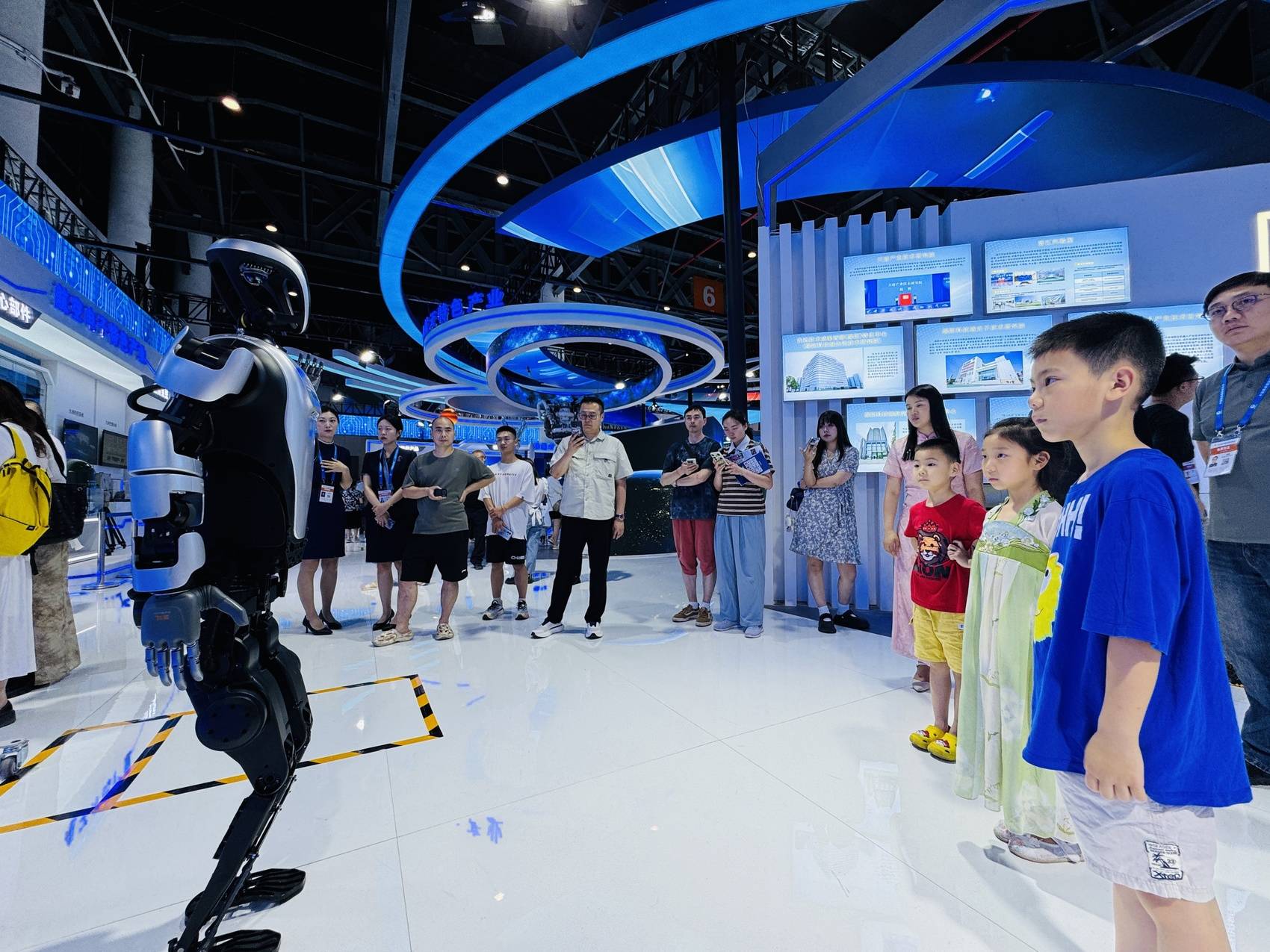 参观者围观“绵阳造”人形机器人。郭超英 摄