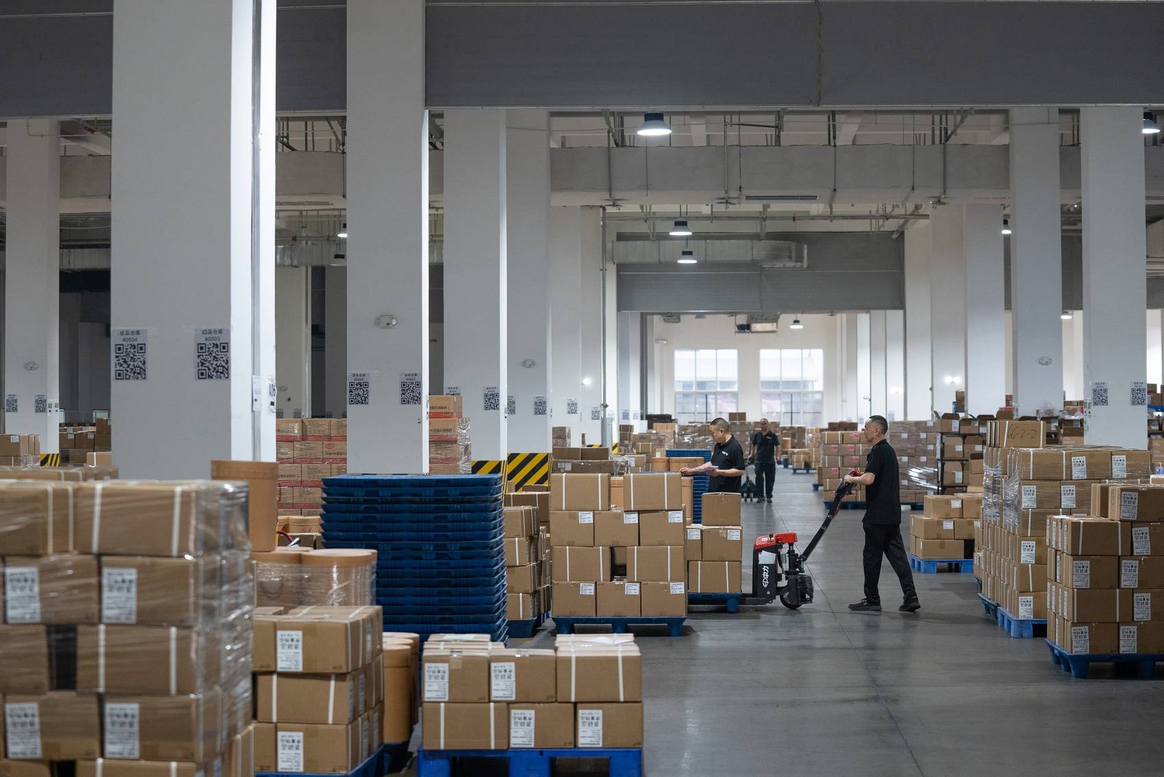 仓库里工作人员正清点产品。