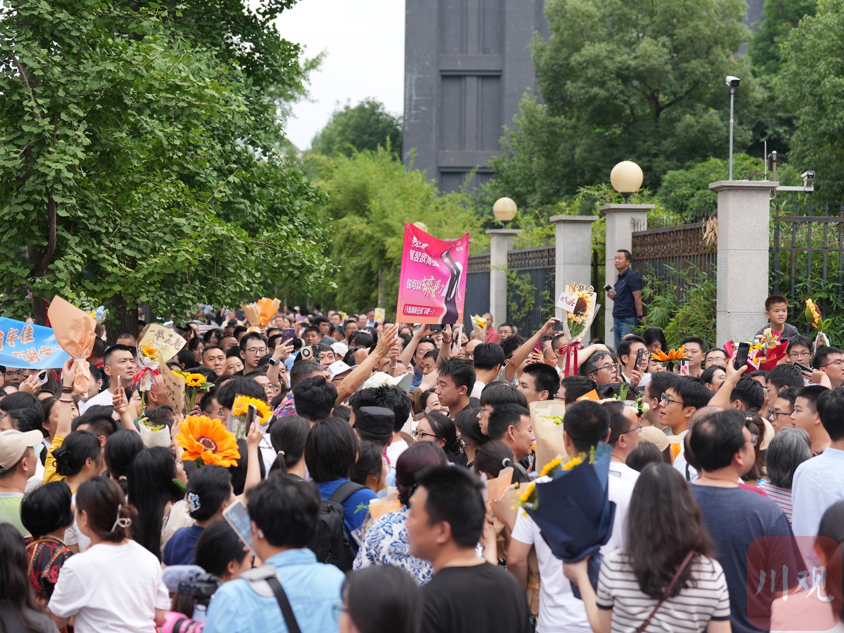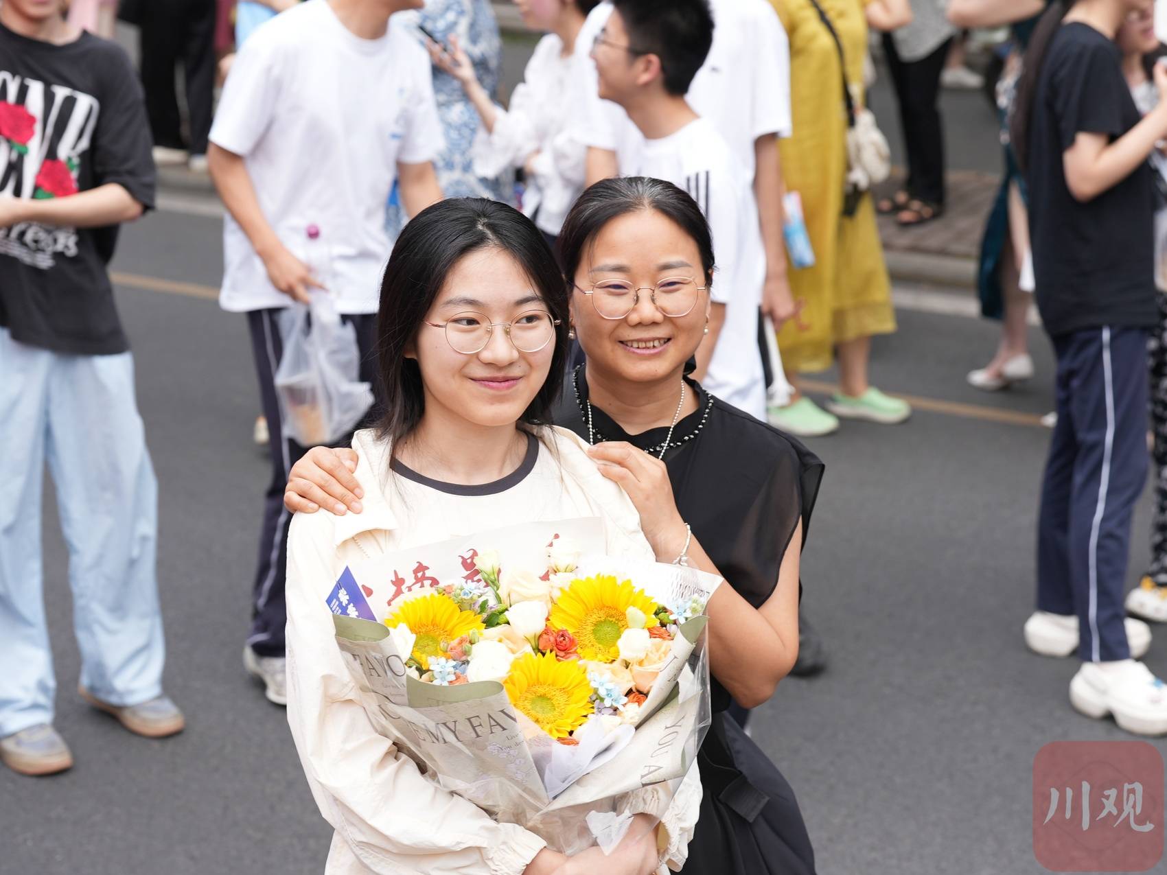 在成都市第二十中学校考点外,家长们早早拉起祝福横幅、手捧鲜花和礼物等候考生出场,现场氛围热烈。考试结束后,考生们迈着轻快的步伐走出考场,与等候多时的家长紧紧相拥。让我们一起来听听家长和考生的心声吧!