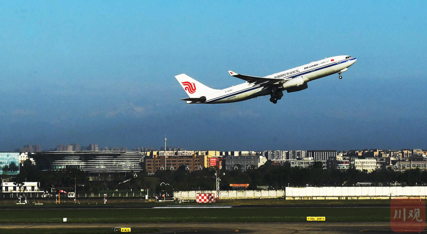 2025年6月10日,一架飞机从成都双流国际机场起飞。