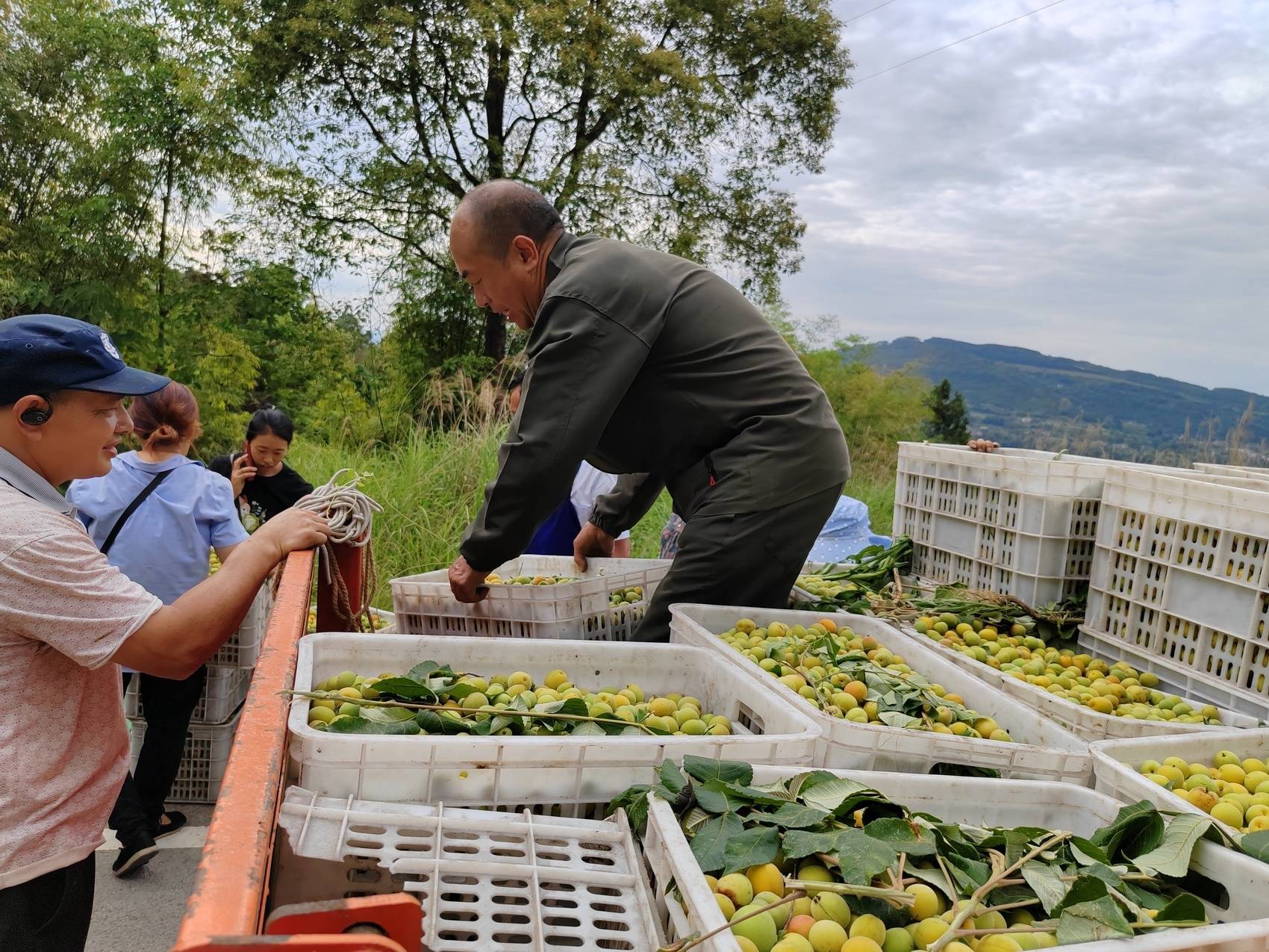 近日,达川区乌梅种植基地,种植户们将采摘的乌梅进行集中装车。李彦 摄