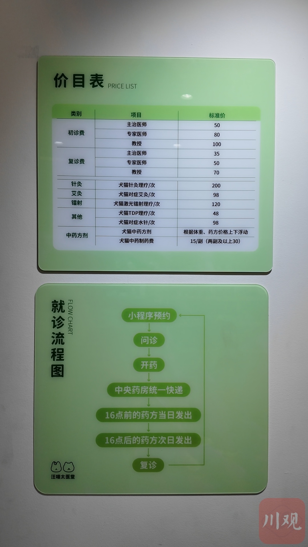 但是消费者对纯中医疗法的接受度到底如何,汪喵太医堂创始人伍迎九其实最开始心里也是打鼓的。于是,他在2023年进行了一个试点计划:依托四川农业大学中兽医相关课程培养出的人才,在他创立的另外一家主攻西医治疗的“兄弟单位”——汪喵太医院,开设了专门的“中兽医”门诊。