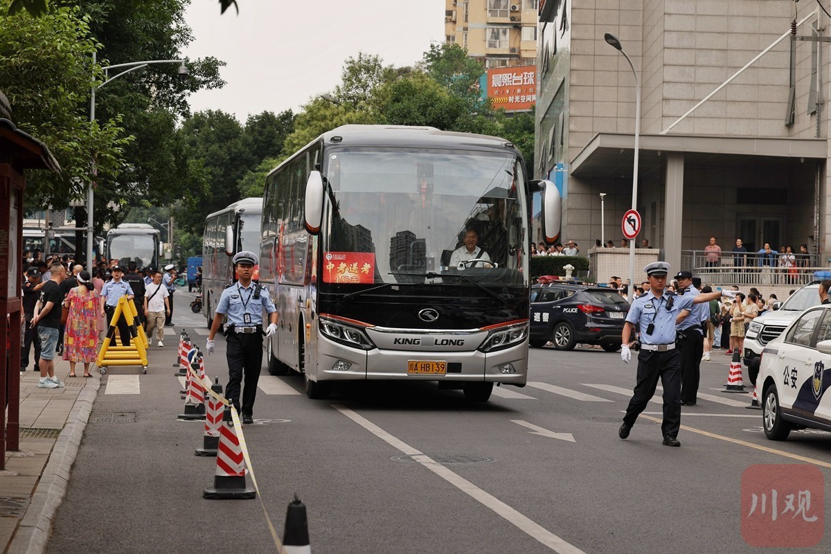 6月13日早上8时许,2025年成都市中考首日,四川师大附中书院分校高中部考点,考生们已经陆续进场,家长们等在街对面。