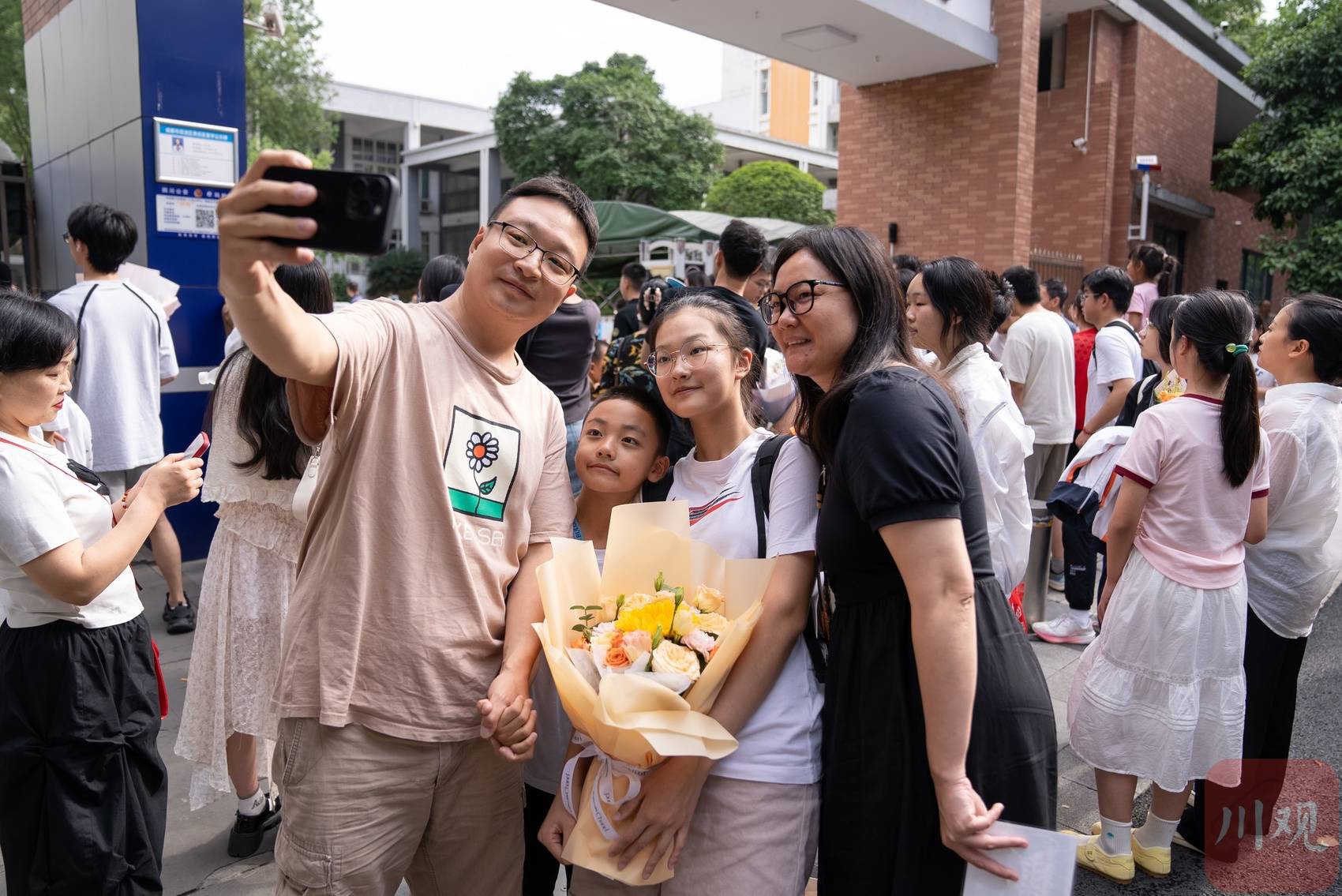 6月14日下午4点30分,随着英语考试结束铃声响起,2025年成都市中考顺利落幕。在双流区棠湖中学实验学校考点,考生们带着轻松的笑容走出校门,而校门旁一道道默默守候的身影格外引人注目——许多父亲手持鲜花,在考场外等候陪伴为孩子护航。父亲们或许不善言辞,却如大树般为青春遮风挡雨。这一刻,考场外的拥抱与告白,成了这个夏天最动人的风景。当被问及最想对父亲说的话时,考生们纷纷表达了对父亲的感恩与爱意……