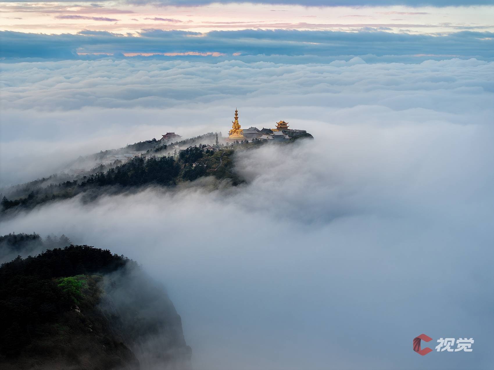 从峨眉山万佛顶遥望金顶,高山杜鹃傲立云端。C视觉签约摄影师 沈军