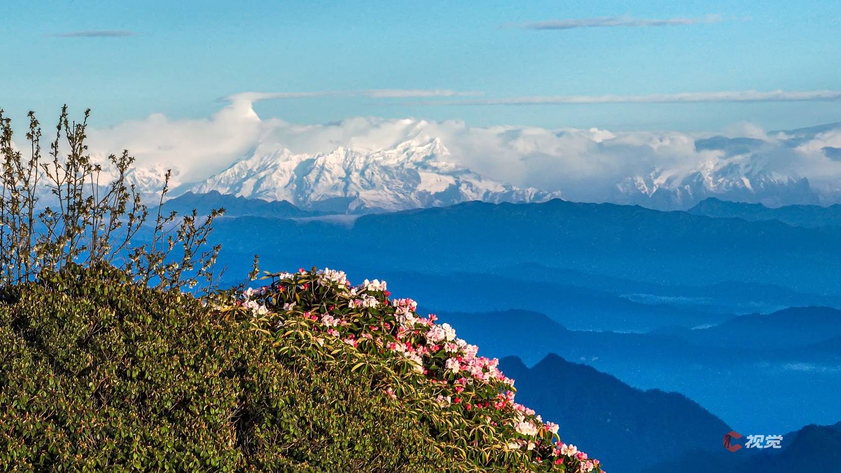 在峨眉山金顶,高山杜鹃与贡嘎雪山同框。C视觉签约摄影师 余进