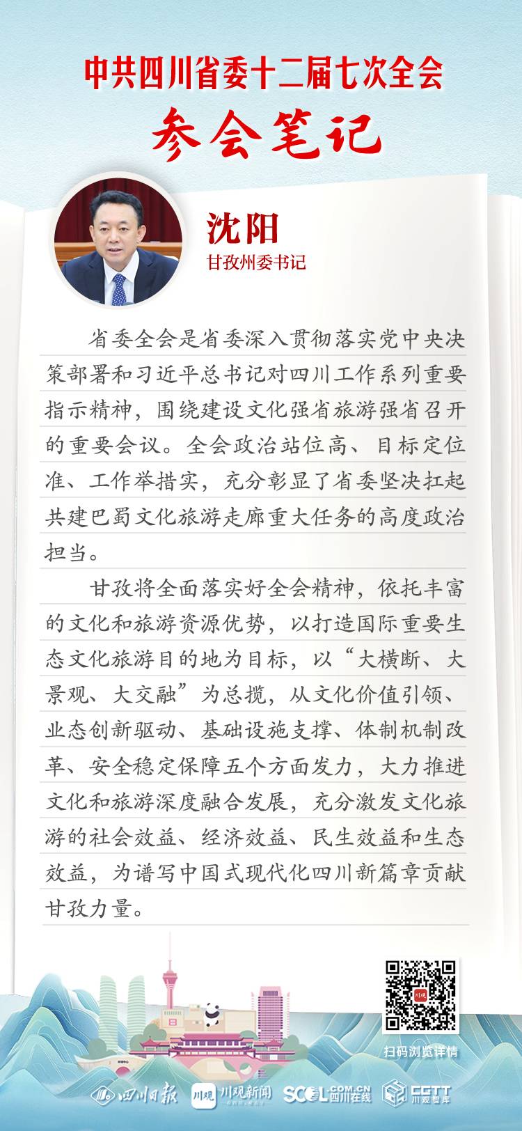省委全会是省委深入贯彻落实党中央决策部署和习近平总书记对四川工作系列重要指示精神,围绕建设文化强省旅游强省召开的重要会议。全会政治站位高、目标定位准、工作举措实,充分彰显了省委坚决扛起共建巴蜀文化旅游走廊重大任务的高度政治担当。