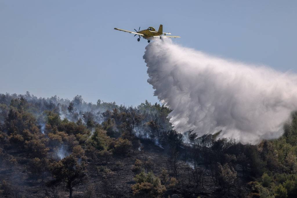 6月16日,消防飞机在希腊雅典附近发生林火的地区灭火。