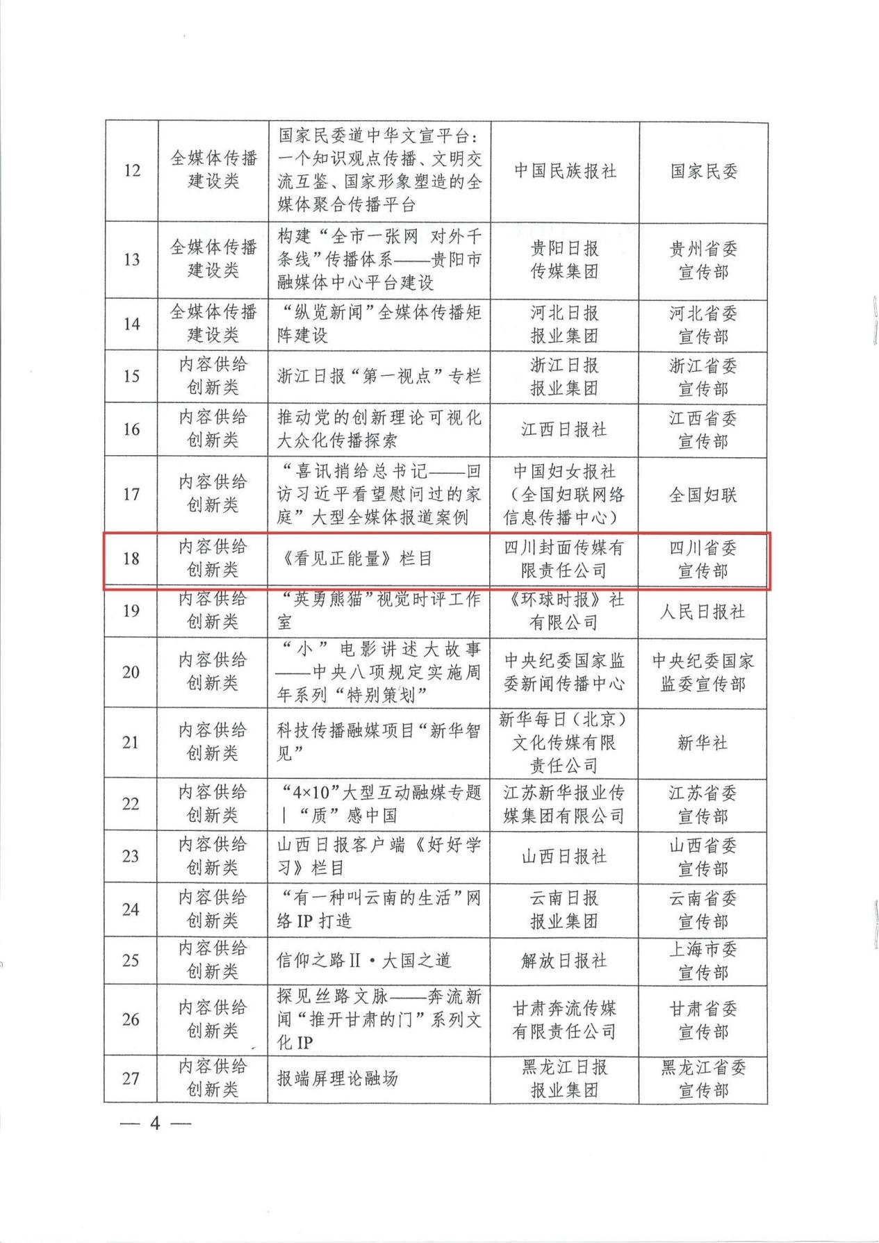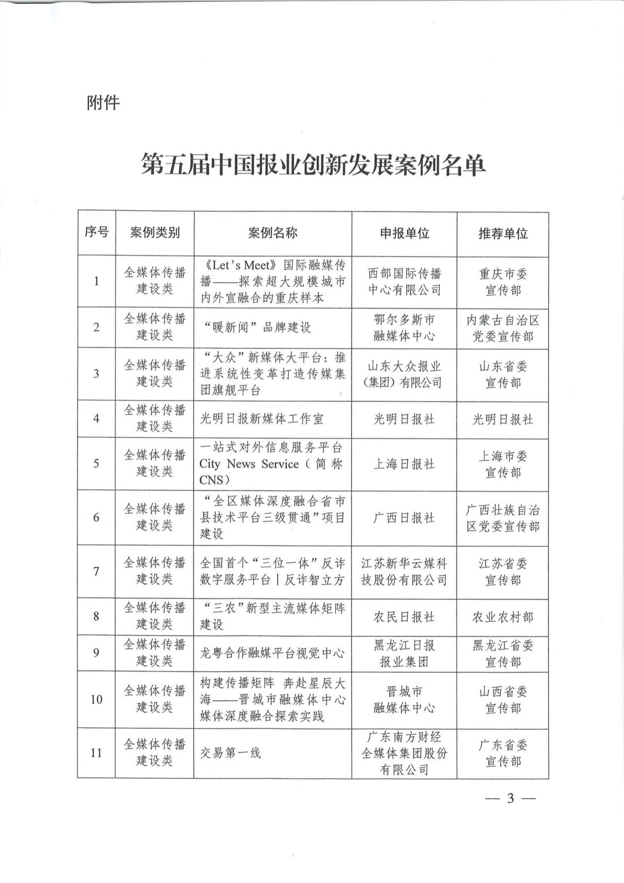 近日,国家新闻出版署公布第五届中国报业创新发展案例名单,全国共评出60个创新案例,四川有三个案例成功入选。