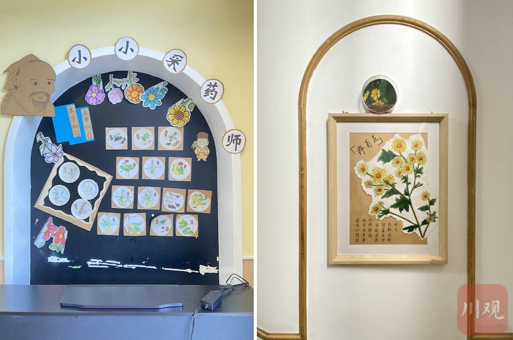 教室内、楼梯间等有不少中药材的“痕迹”。底伊乐 摄