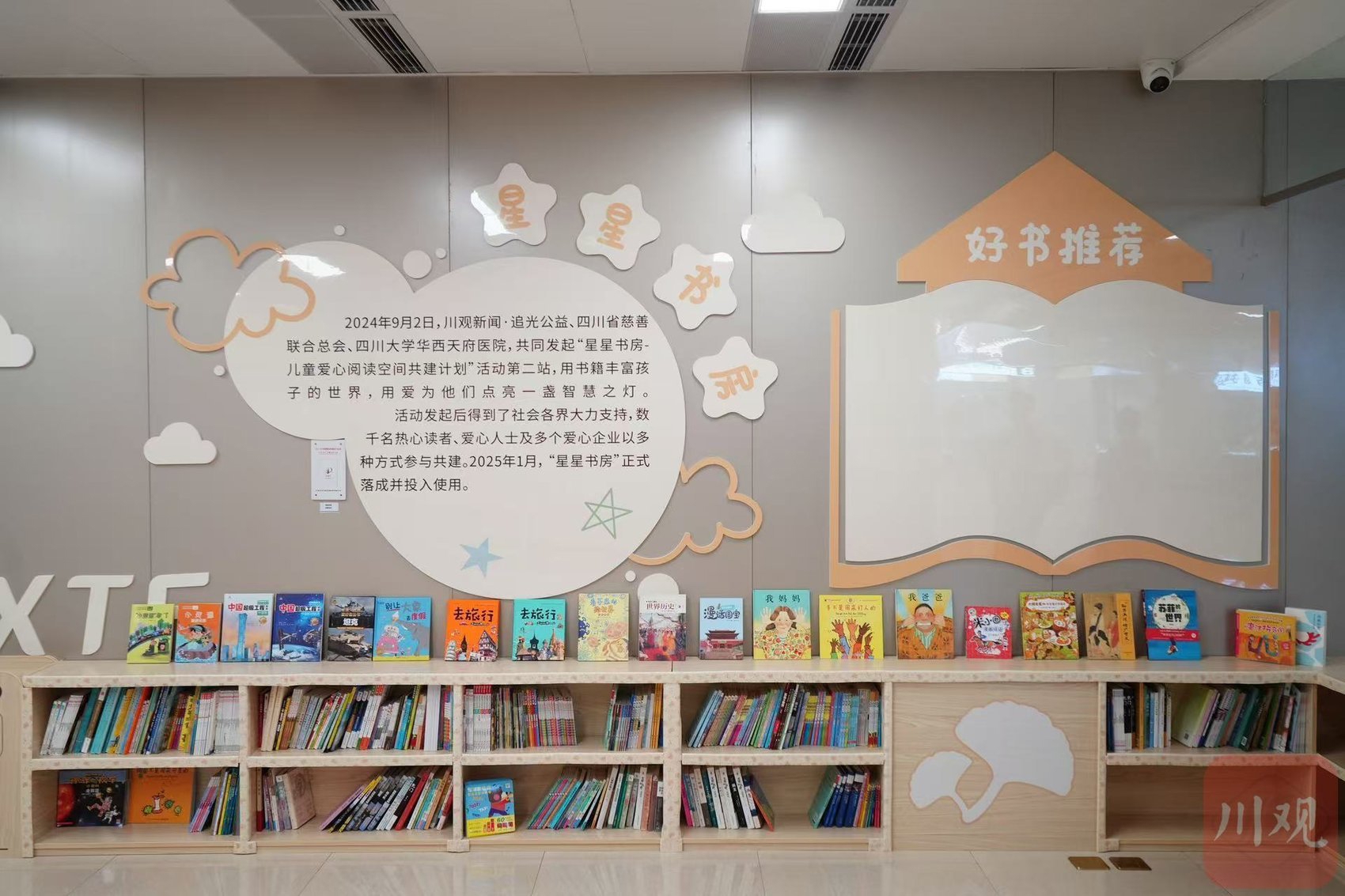 “星星书房”第二站设在四川大学华西天府医院,引入社会力量捐赠千余册图书。(点击查看详情:追光公益丨“星星书房”上新!第二站在四川大学华西天府医院投入使用)