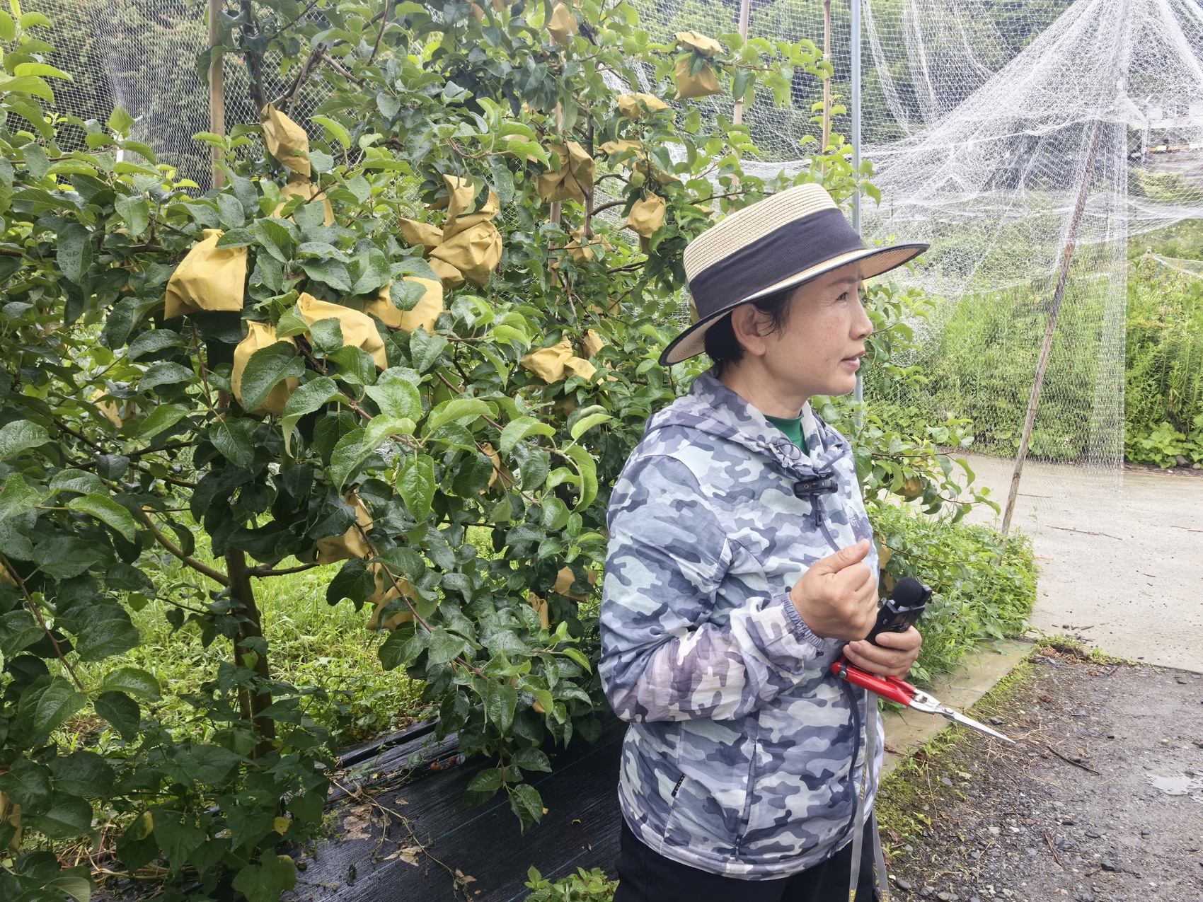 “今天必须把这一片的果子套完,不然来不及了。”6月19日,“长征路上看四川”大型宣传教育活动来到了丹巴县甲居镇,一片果园中,该县农牧农村局农艺师刘新丽正带着大家给苹果套袋。