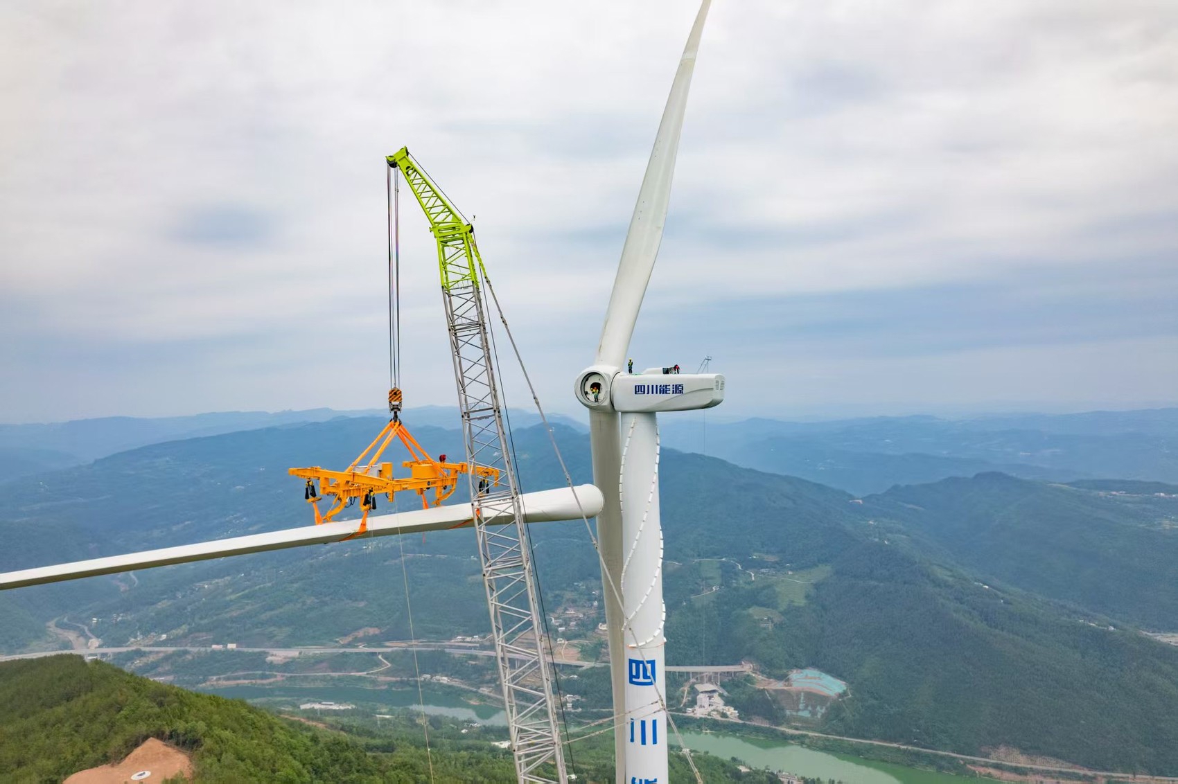 风力发电机吊装细节。 何雨隆 摄