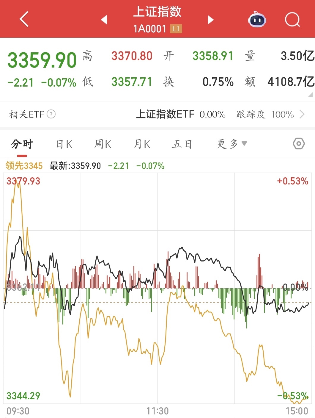 6月20日,A股市场延续调整,开盘后上证指数短暂冲击3400点后震荡走低,最终微跌0.07%收于3359.9点,深证成指跌0.47%,收于10005.03点;创业板指跌0.84%,收于2009.89点;北证50跌1.34%。全市场成交额缩量至10916亿元,较前一日减少1892亿元。