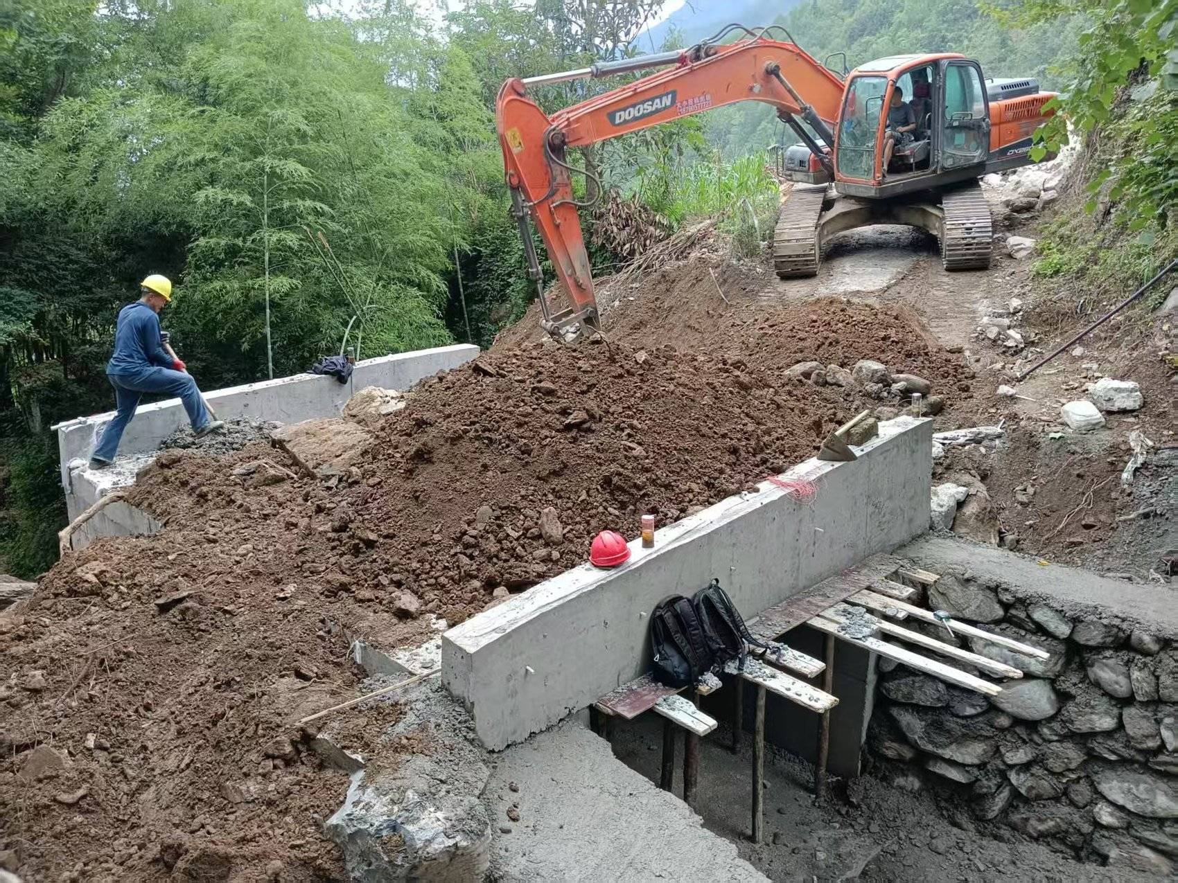 平武县平通羌族乡易大村板涵桥改建工程施工现场。