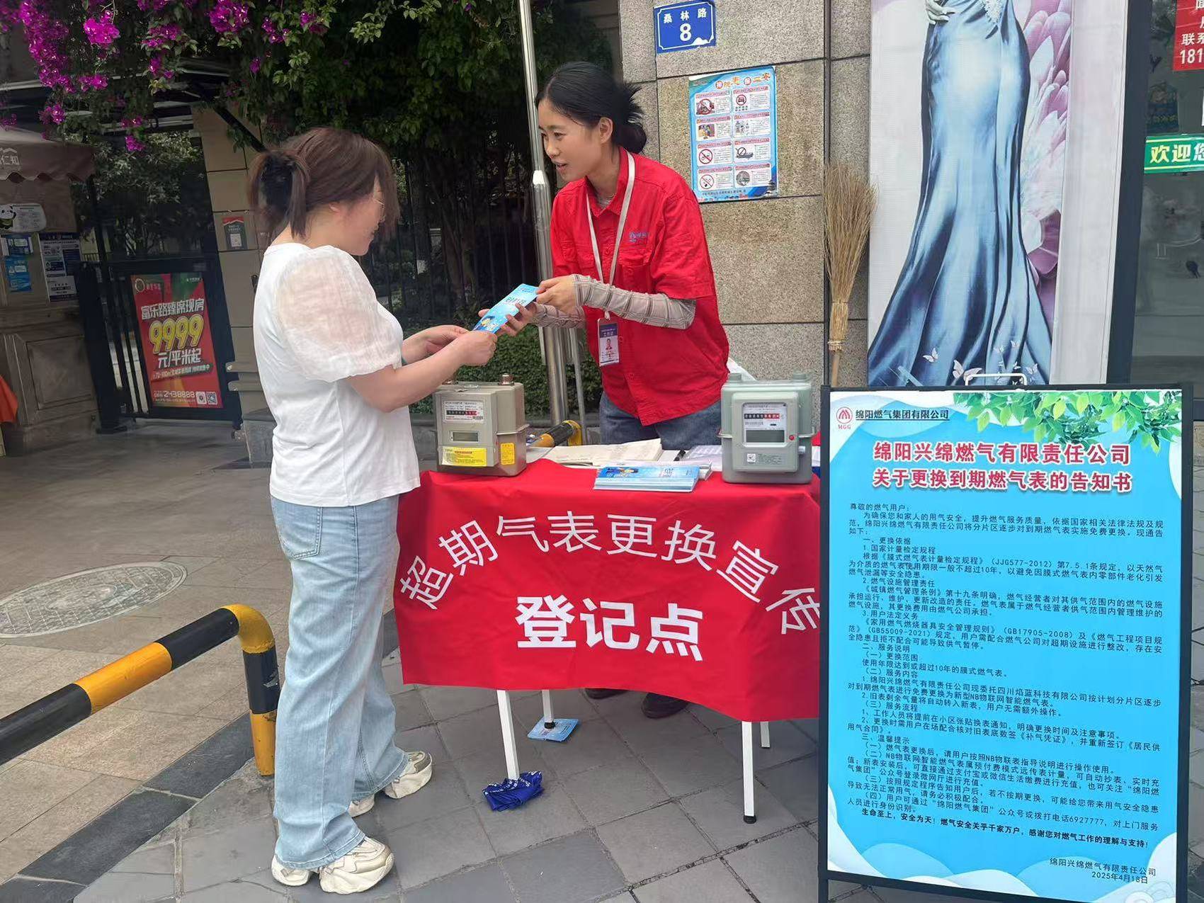 绵阳燃气集团工作人员在游仙区东原香屿小区进行超期气表更换宣传。