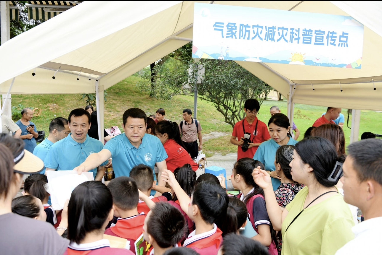 启动仪式后,在都江堰市同心广场,与会嘉宾和大学生志愿者向群众作了气象防灾减灾科普宣传并发放相关学习资料。其中,成都信息工程大学、四川省气象服务中心、都江堰市气象局主办的气象科普游园会,设有多个互动体验区,社区居民和小学生们通过趣味实验、VR体验等方式,近距离感受了气象科学的魅力。在都江堰市工人文化宫,开展了《认识中国气候——季风与气候灾害》科普讲座。活动中,与会嘉宾还来到都江堰市抗震救灾恢复重建陈列馆气象防灾减灾现场学习,气象科普专家和大学生志愿者到都江堰市李冰中学开展气象科普进校园活动。